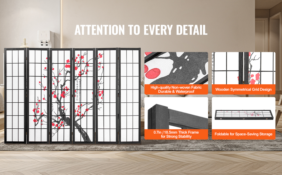 Tento paravánový rozdeľovač izieb je vybavený vysokokvalitnou netkanou textíliou, vďaka čomu je odolný a odolný proti roztrhnutiu a zároveň vodotesný a ľahko sa čistí pre všetky vaše potreby v oblasti súkromia. Stabilné oporné nožičky v spojení s dreveným rámom s hrúbkou 0,7 palca / 18,5 mm zvyšujú stabilitu pre pokoj počas používania.