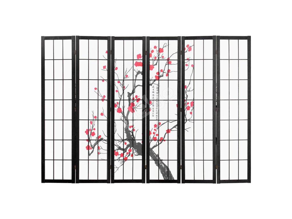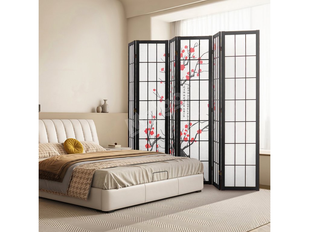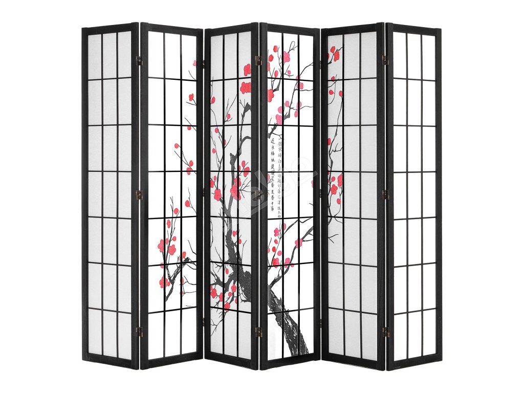 Sklopný japonský paraván, 6 panelov, drevený, prenosný, do interiéru
