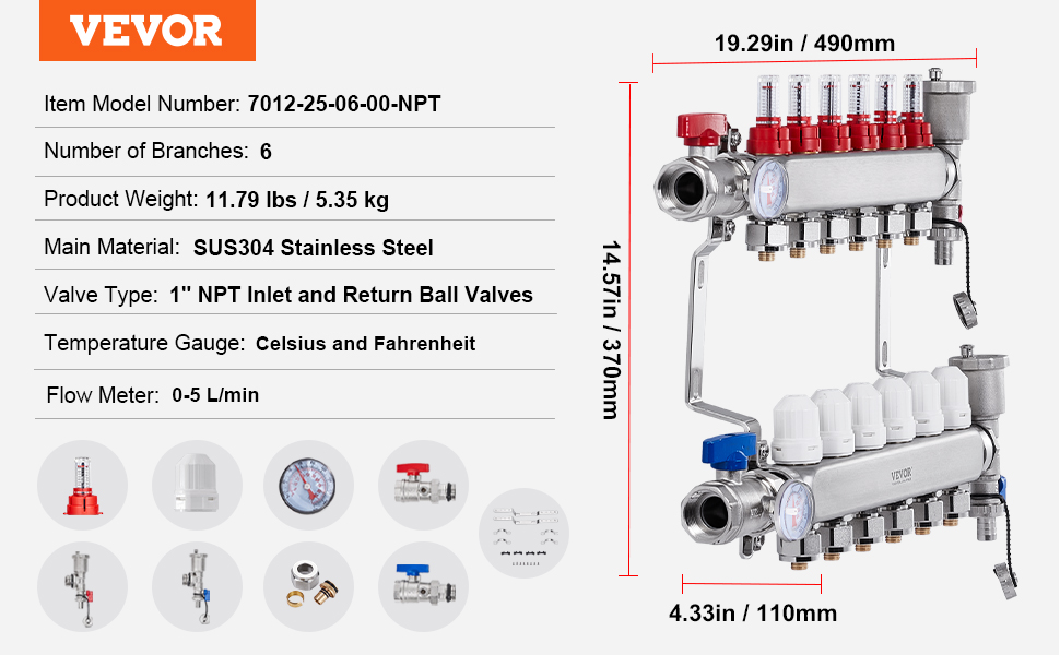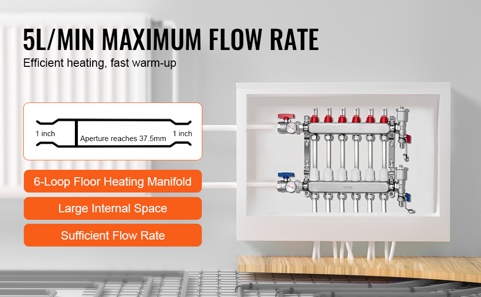 Vyberte si 6-vetvový rozdeľovač sálavého tepla VEVOR na rýchle a spoľahlivé vykurovanie. S prietokom až 5 l/min poskytuje rýchle a konzistentné teplo v celom priestore. Konštrukcia z nehrdzavejúcej ocele SUS304 ponúka výnimočnú odolnosť voči vysokým teplotám a korózii, čím zabezpečuje dlhodobý výkon.