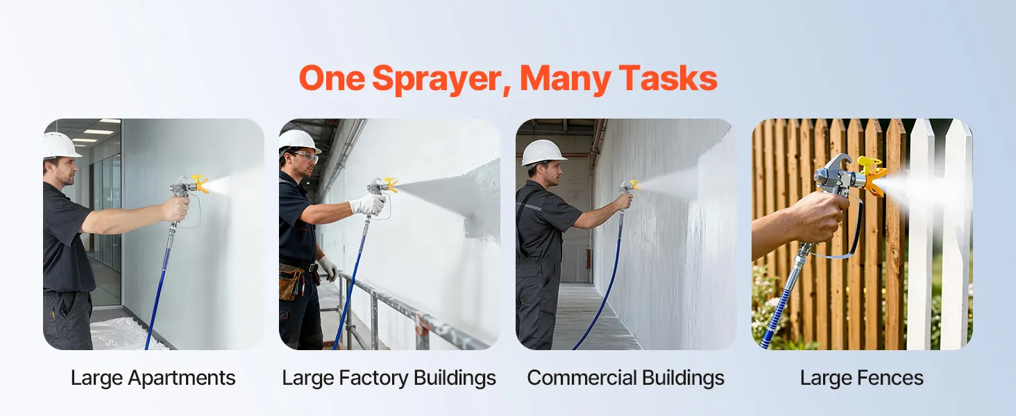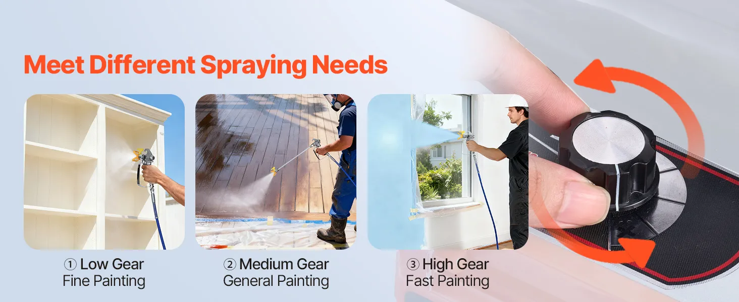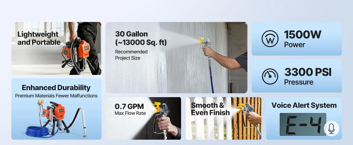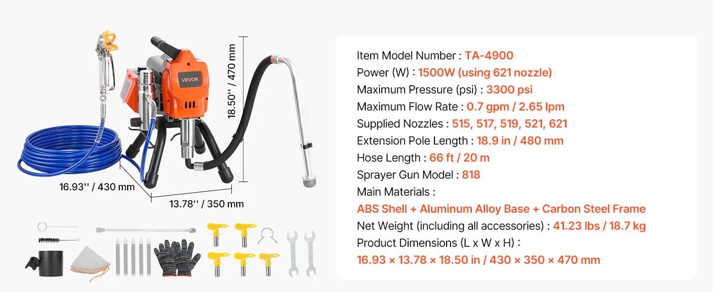 Airless striekací stroj 1500 W, 3300 PSI, hadica, tyč, trysky