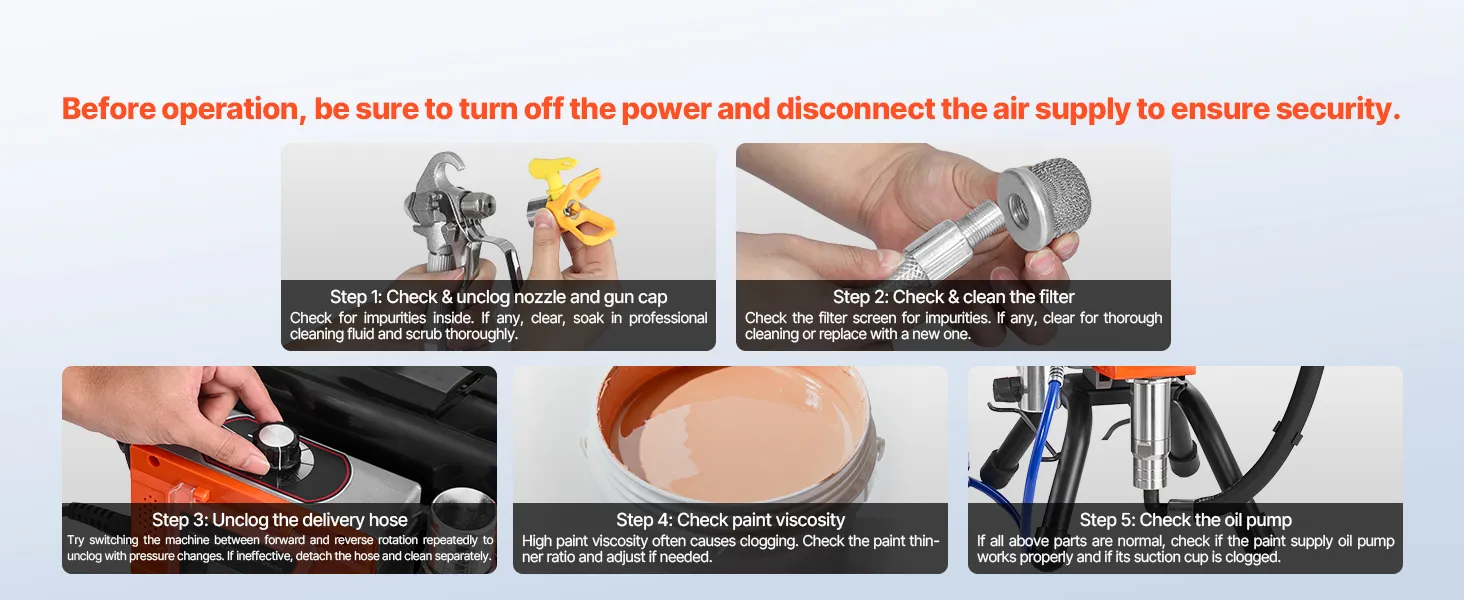 A1: 1. Najskôr zaistite bezpečnosť! Používajte ochranné okuliare, respirátor (alebo masku), rukavice a ochranný odev. 2. Pripravte si farbu: Vždy dôkladne premiešajte farbu a preceďte ju, aby ste odstránili všetky častice, ktoré by mohli upchať hrot.