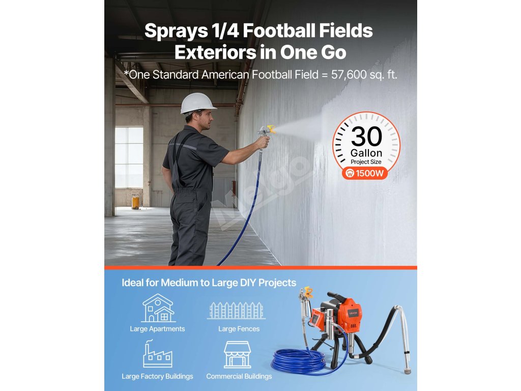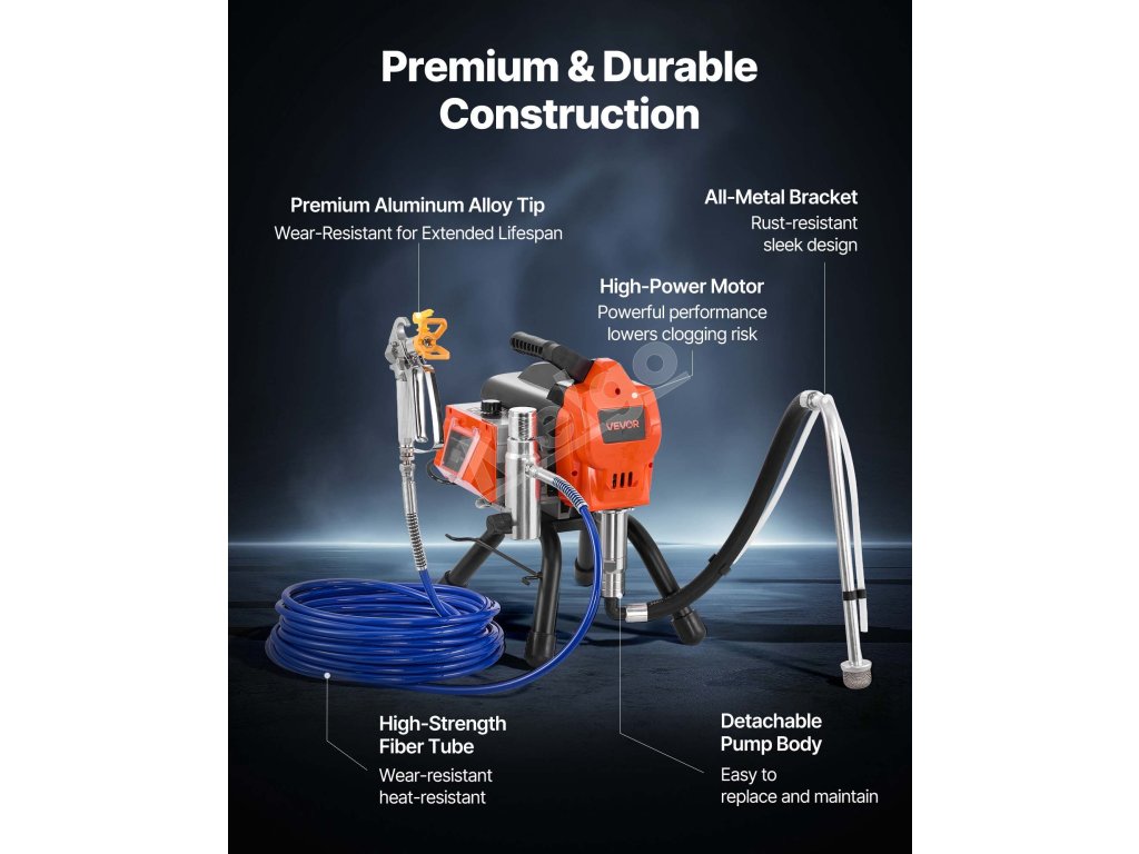Airless striekací stroj 1500 W, 3300 PSI, hadica, tyč, trysky