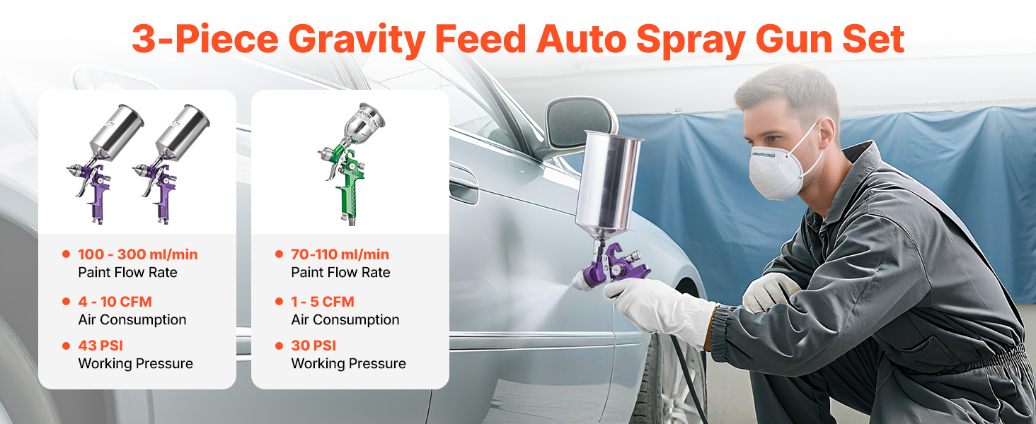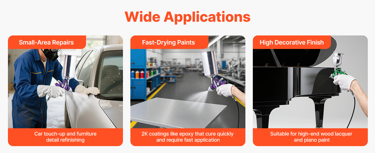 Naša 3-dielna súprava na striekanie farby na automobily je ideálna na širokú škálu aplikácií, poskytuje hladké a rovnomerné nátery na lakovanie automobilov, renováciu nábytku alebo projekty na zlepšenie domácnosti.