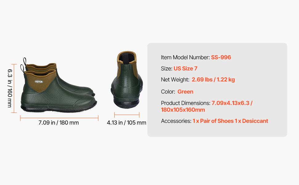 Gumené čižmy sú vyrobené z vysokokvalitnej gumy, ktorá ponúka vynikajúcu odolnosť voči mokrým podmienkam a priedušnosť, vďaka čomu vás udrží v suchu a pohodlí počas outdoorových aktivít. Stielka EVA poskytuje pohodlné nosenie, zatiaľ čo ľahká konštrukcia vám umožní ľahko riešiť rôzne situácie.