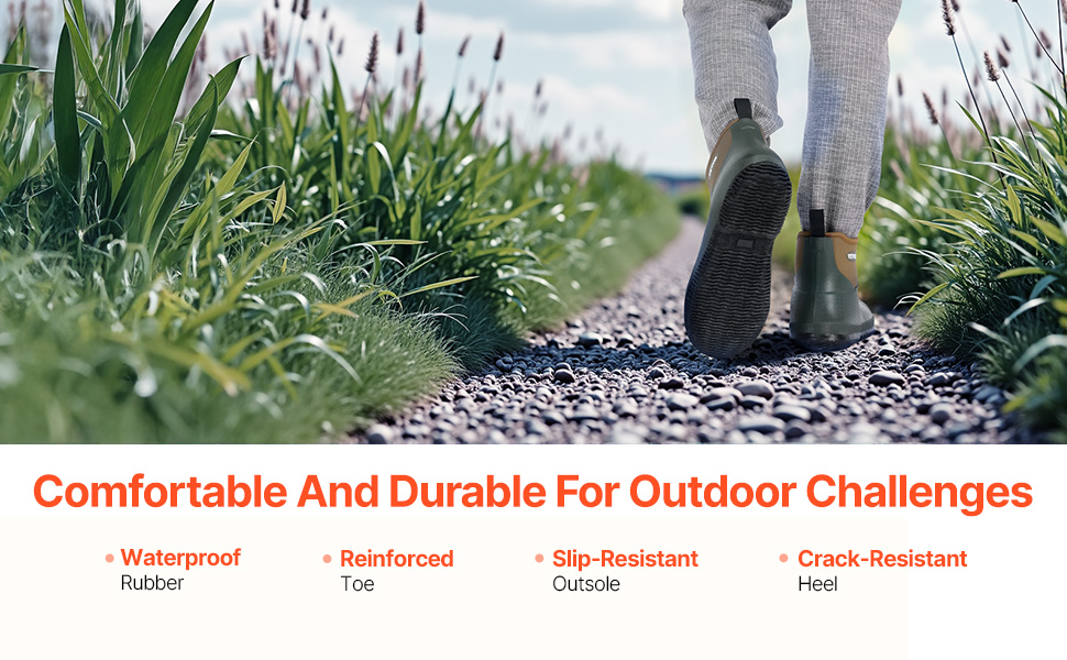 Tieto outdoorové topánky vyrobené z odolnej gumy majú protišmykovú konštrukciu podrážky, zosilnenú špičku a pätu odolnú proti prasknutiu, čo vám umožní bez námahy zdolávať outdoorové výzvy a zároveň si užívať pohodlné a dlhotrvajúce nosenie.