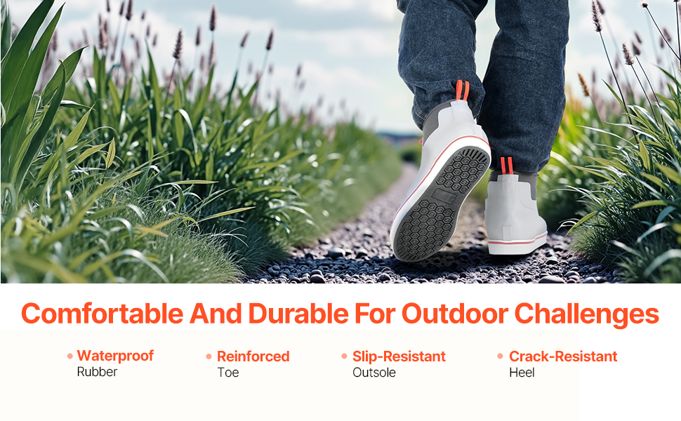 Tieto outdoorové topánky vyrobené z odolnej gumy majú protišmykovú konštrukciu podrážky, zosilnenú špičku a pätu odolnú proti prasknutiu, čo vám umožní bez námahy zdolávať outdoorové výzvy a zároveň si užívať pohodlné a dlhotrvajúce nosenie.