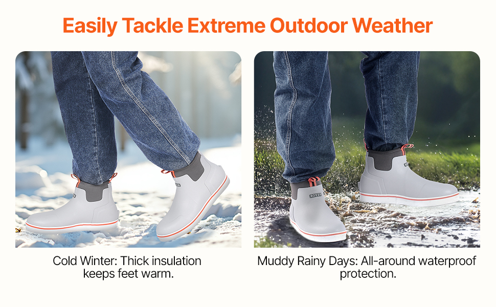 Vďaka zosilnenej izolačnej konštrukcii zostanú vaše nohy v teple a pohodlí aj v chladnej zime, čo uľahčuje zvládanie prostredia s nízkymi teplotami. Gumený zvršok a podrážka týchto topánok odolných voči škvrnám poskytujú komplexné pokrytie, vďaka čomu zostanú vaše nohy v suchu v blatistých alebo daždivých situáciách.