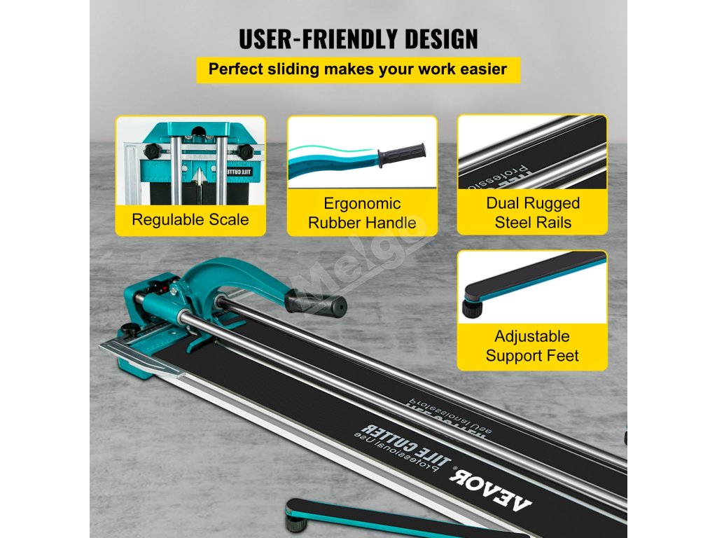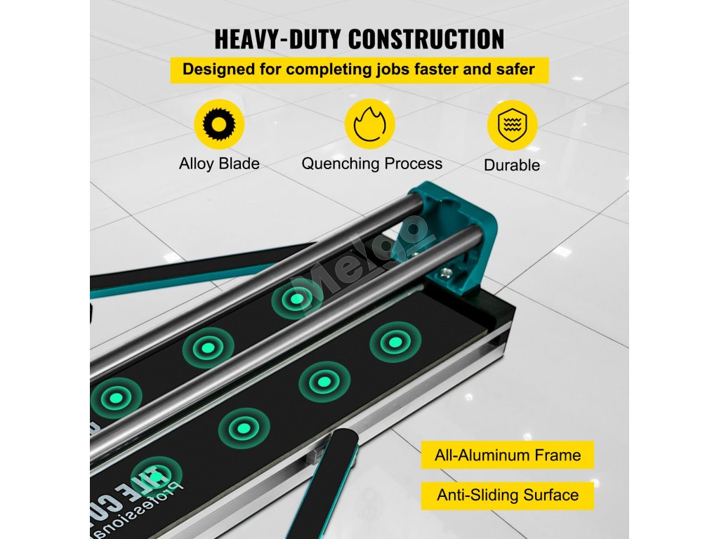 Tento rezač keramických obkladačiek je vyrobený z hliníka, má krátku a jednoduchú konštrukciu, pohodlné a bezpečné používanie, rýchle rezanie, prenosný a kompaktný. Vyznačuje sa maximálnou reznou kapacitou 1000 mm a hrúbkou rezu 6-15 mm. Ideálna na rezanie kamenných materiálov vrátane bežných podlahových dlaždíc, leštených dlaždíc atď.