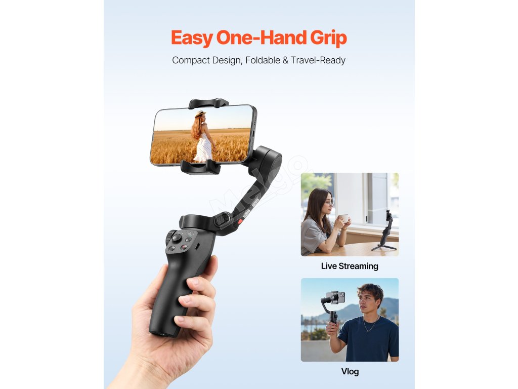 3-osový gimbalový stabilizátor pre smartfón, snímanie kdekoľvek