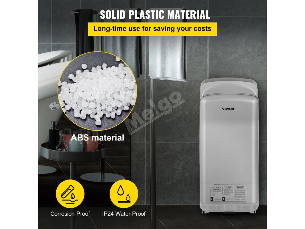 Tento priemyselný lopatkový sušič rúk na domáce aj komerčné použitie je dobrou voľbou pre sušenie vašich rúk. Môžete ho používať na rôznych miestach podľa potreby, s jednoduchou inštaláciou.