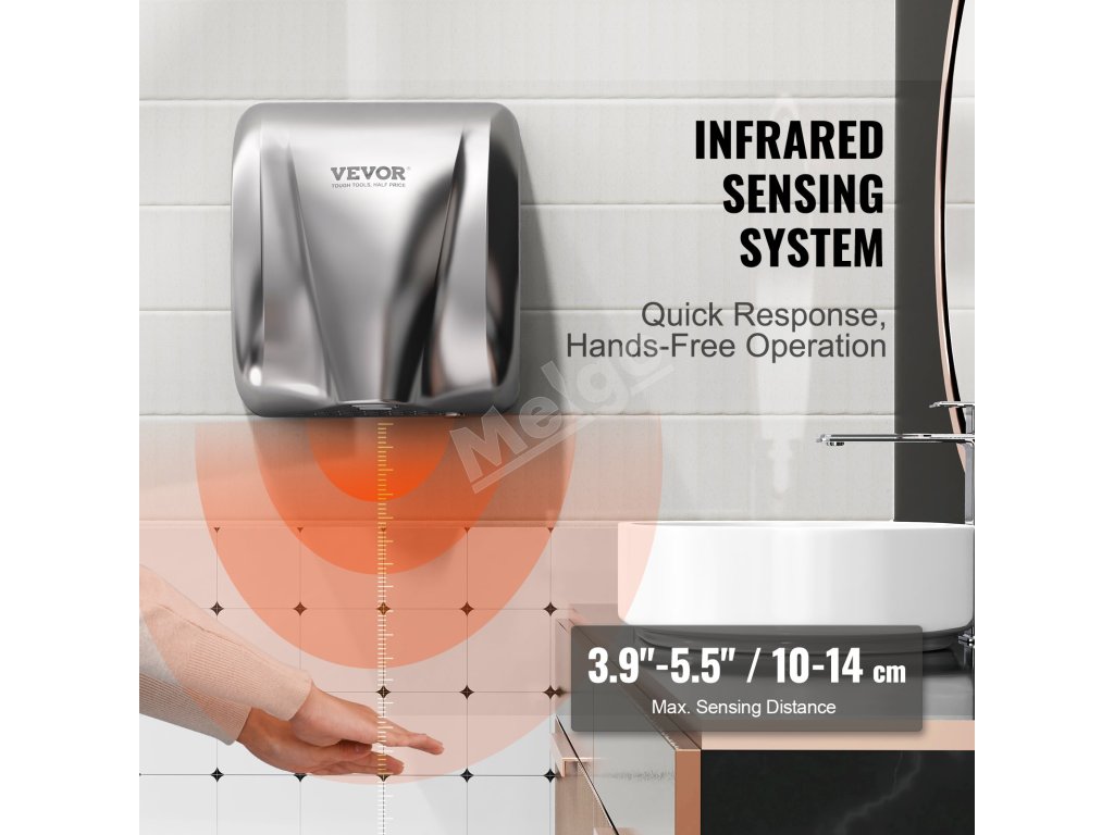 Sušič rúk 1800W automatický nerez teplý vzduch 220–240V zásuvka/pevné