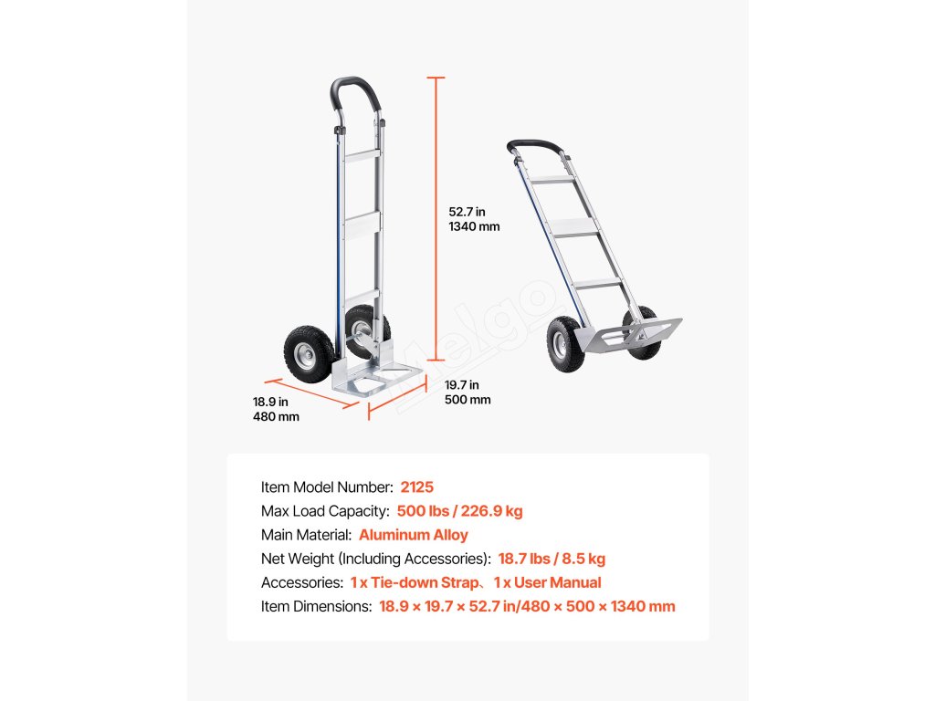 Ručný vozík 226.9 kg, hliník, nešmykľavé kolieska, upínací popruh