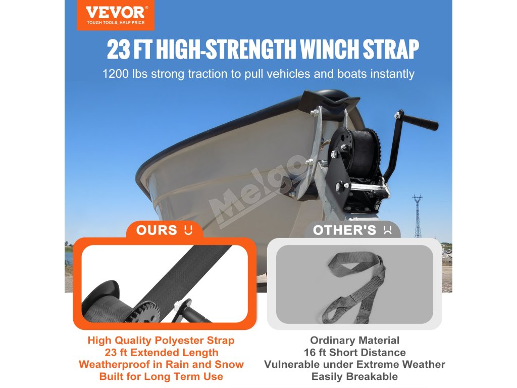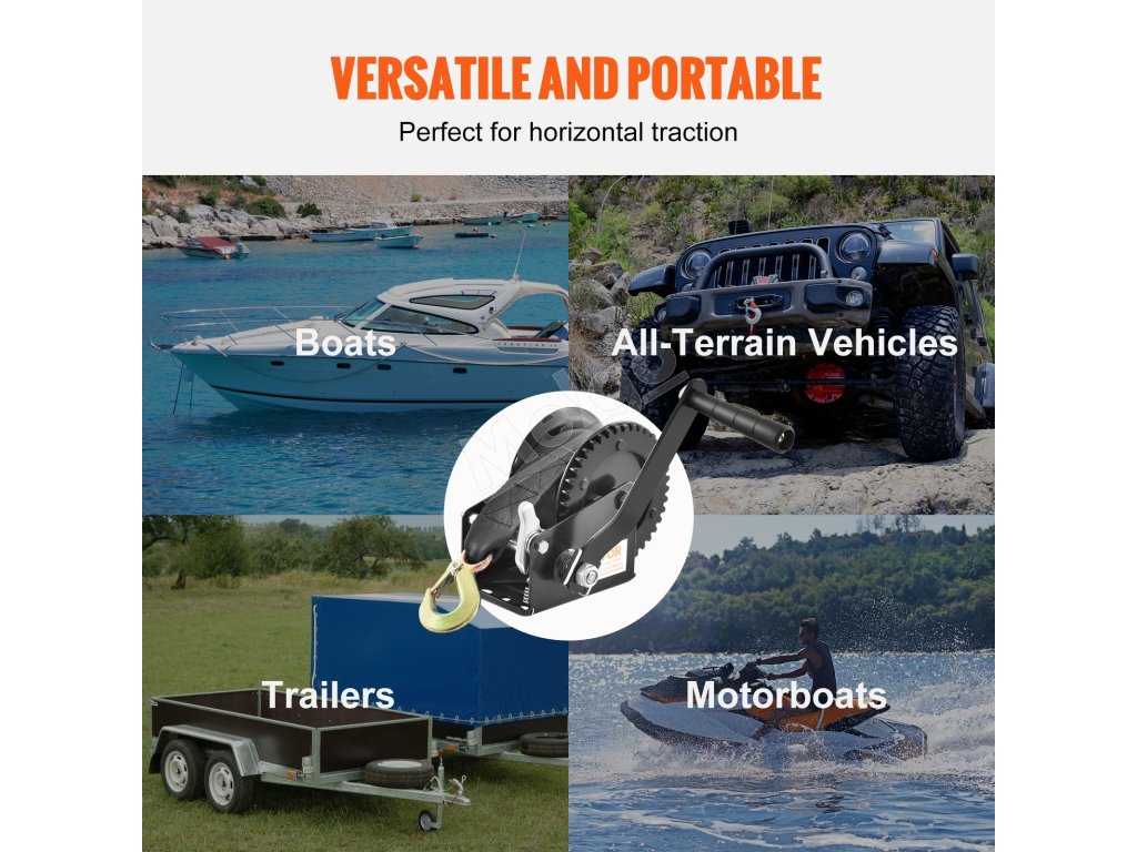 Ručný navijak 544,3 kg, polyesterový popruh 701 cm, dvojcestná západka