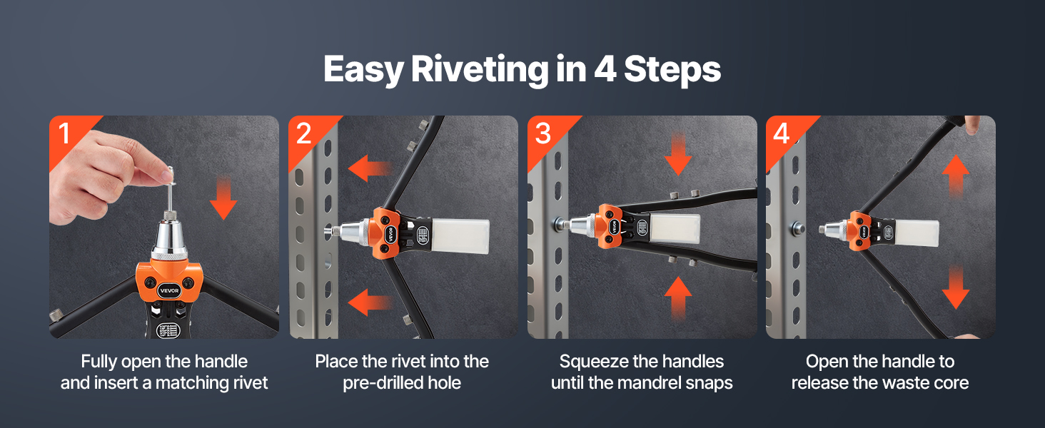 Naša súprava nitovacích pištolí, navrhnutá s ohľadom na pohodlie a kontrolu, poskytuje pevný a plynulý stisk vždy – aj počas dlhých pracovných zmien.