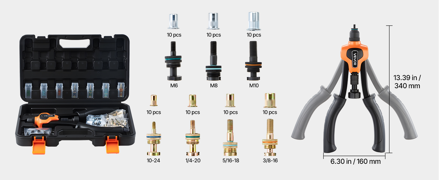 Od domácich opráv až po projekty v dielni, táto kompletná sada nástrojov na nity je presne tam, kde ju potrebujete – prehľadná, spoľahlivá a pripravená na použitie.