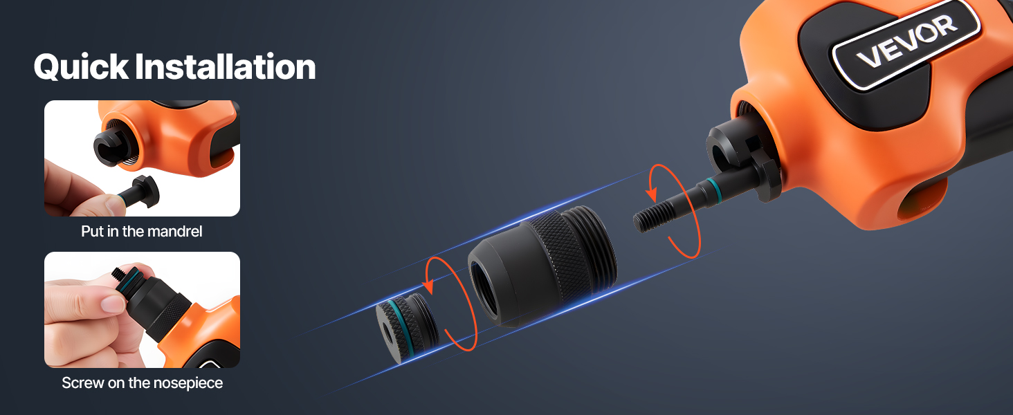 Od vŕtania po upevňovanie, tento nástroj na nity robí každú činnosť intuitívnou – nie je potrebná žiadna skúsenosť, len hladké a uspokojivé výsledky zakaždým.