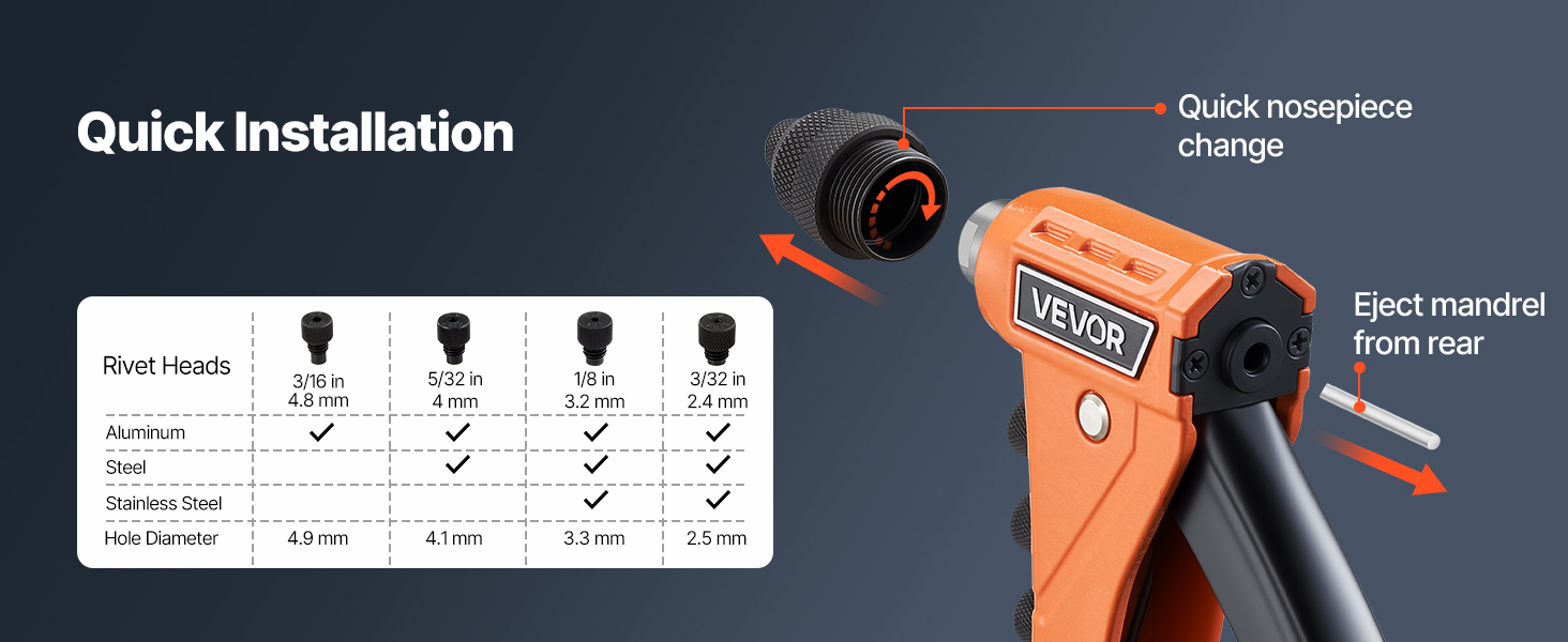 Keď príde čas na zmenu, demontáž je jednoduchá a čistá. Táto sada ručnej nitovacej pištole vám umožňuje vymeniť veľkosti alebo odstrániť zaseknutia za pár sekúnd, čím udržuje plynulosť vašej práce.