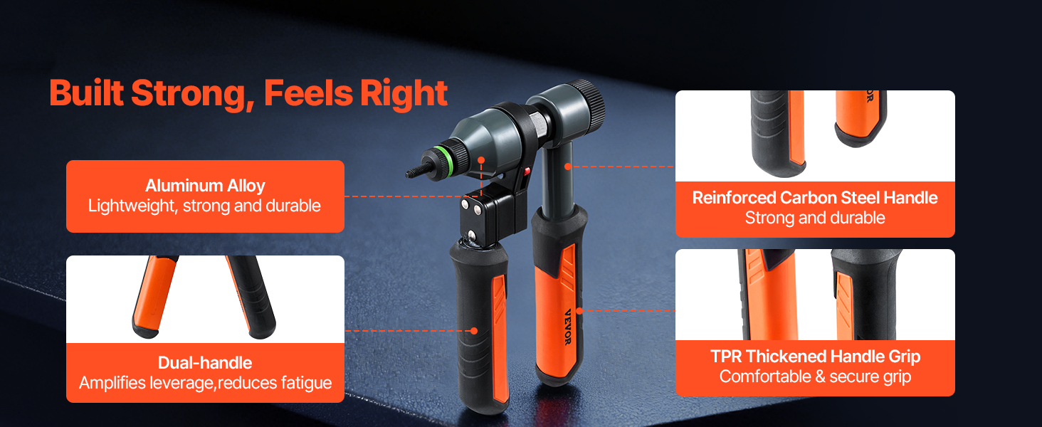 Naša sada nástrojov na nýtovacie matice, navrhnutá pre pohodlie a kontrolu, poskytuje pevný a plynulý stisk vždy – aj počas dlhých pracovných smenách.