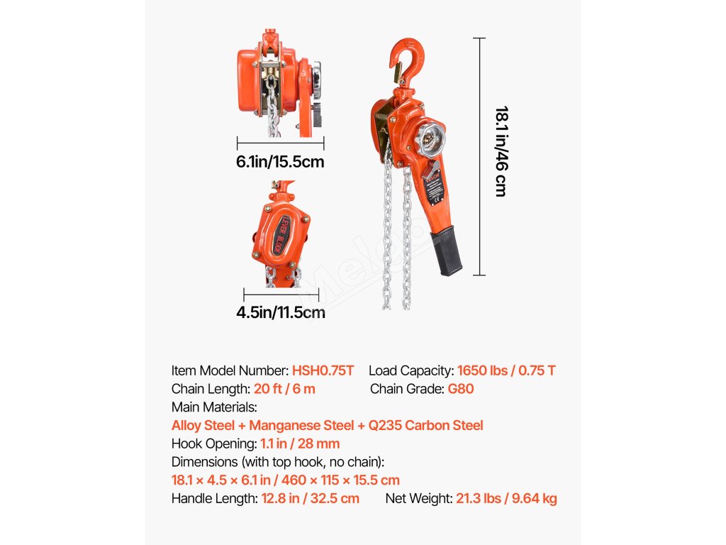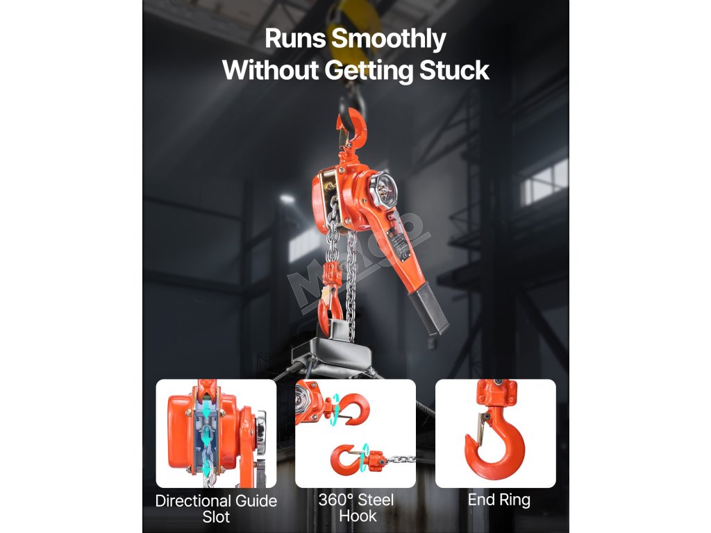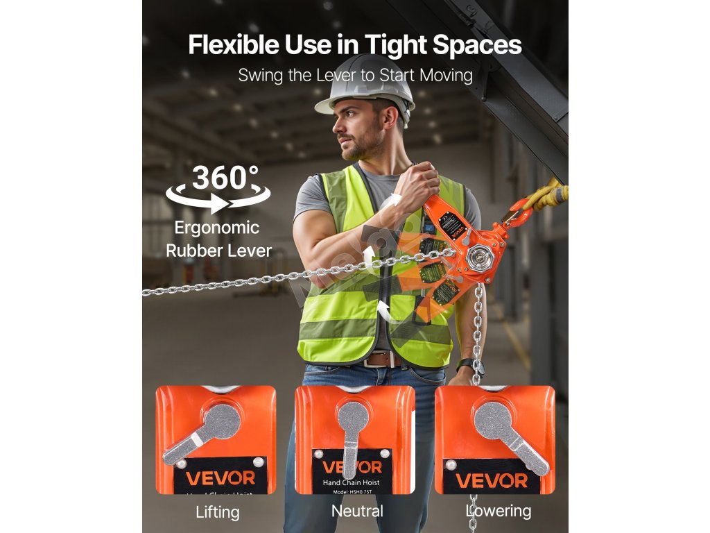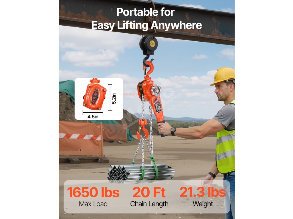 Tento ručný pákový kladkostroj s pozinkovanou reťazou G80 zvládne náročné úlohy, ako je premiestňovanie klád, strojov alebo oceľových nosníkov. Dvojitá západková brzda v štýle Weston a vedená drážka na reťaz zabezpečujú hladkú a bezpečnú prevádzku.