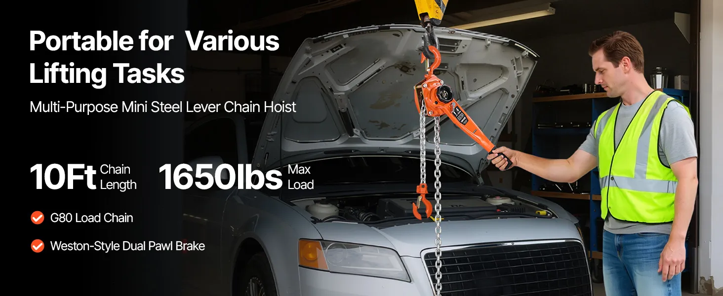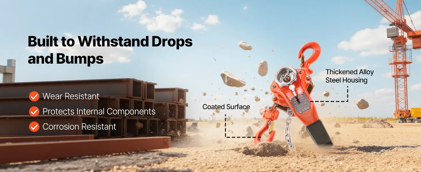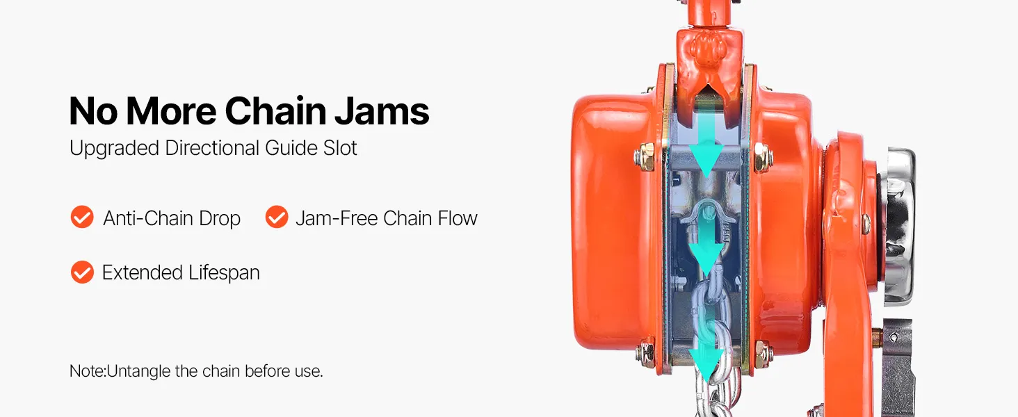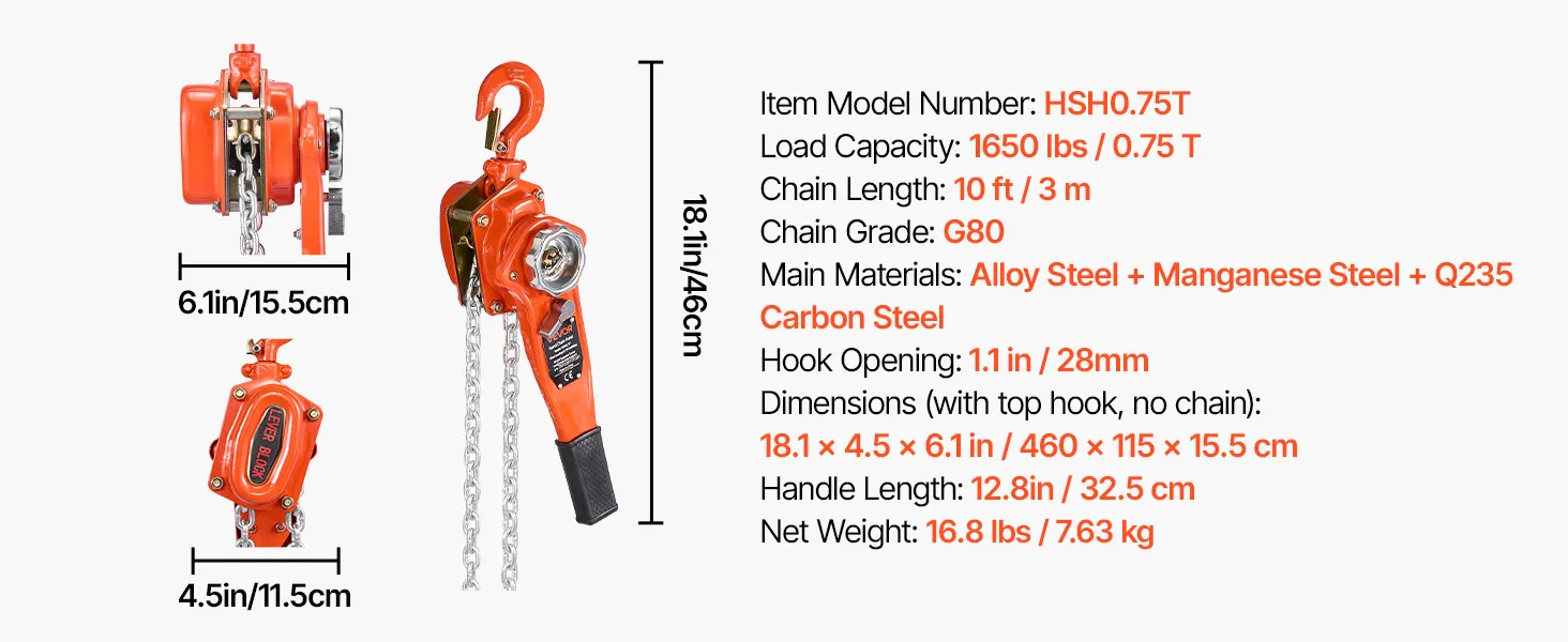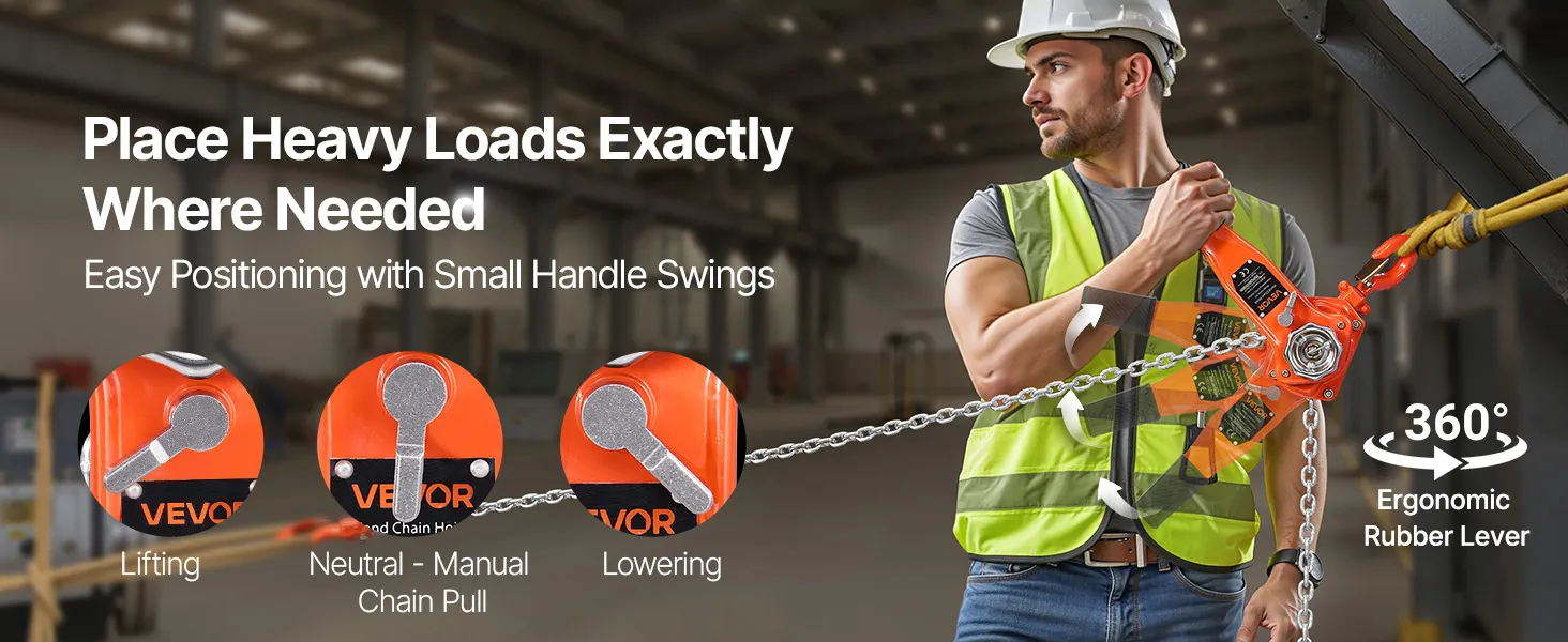 Tento ručný pákový kladkostroj s pozinkovanou reťazou G80 zvládne náročné úlohy, ako je premiestňovanie klád, strojov alebo oceľových nosníkov. Dvojitá západková brzda v štýle Weston a vedená drážka na reťaz zabezpečujú hladkú a bezpečnú prevádzku.