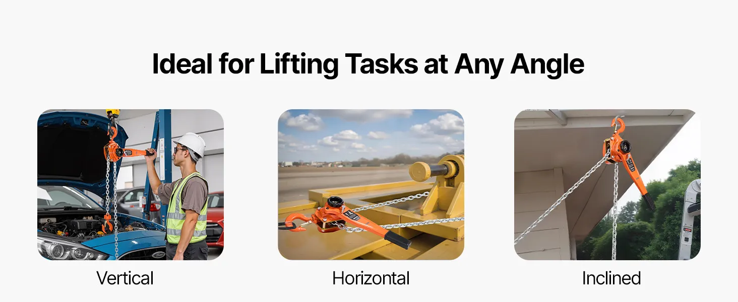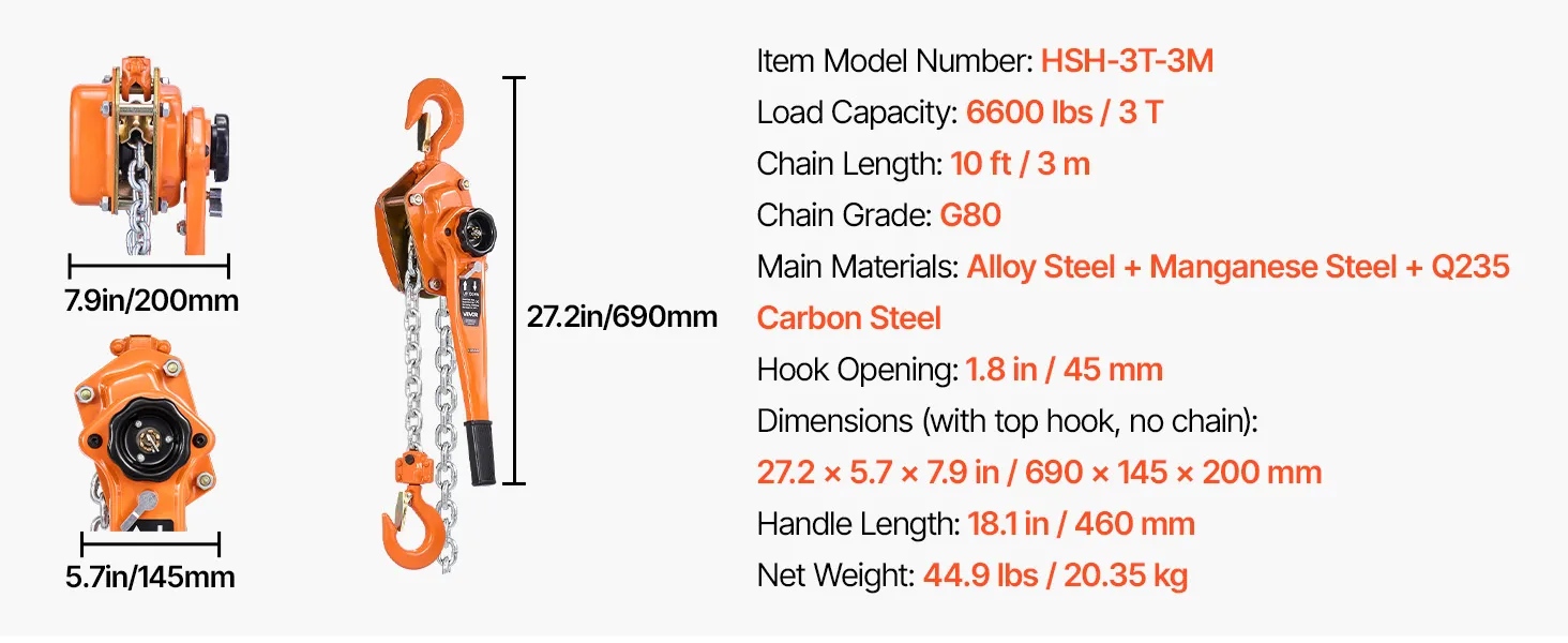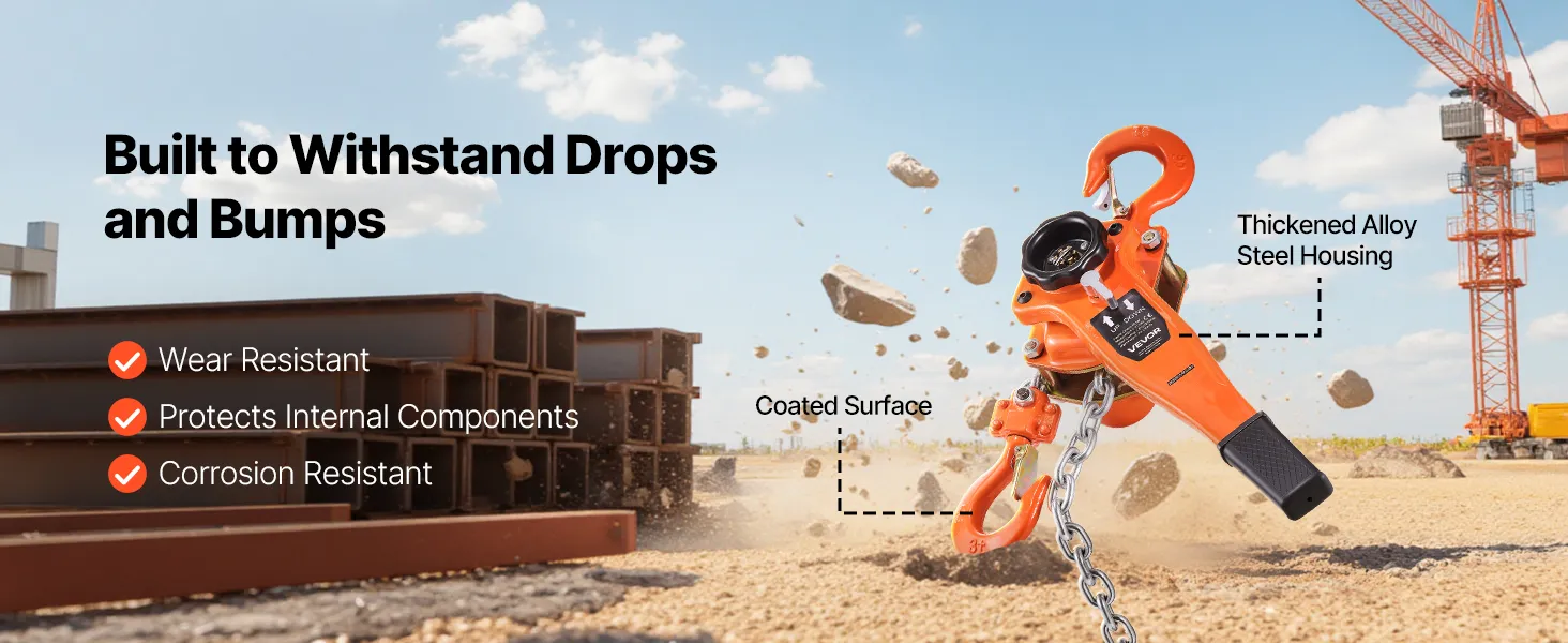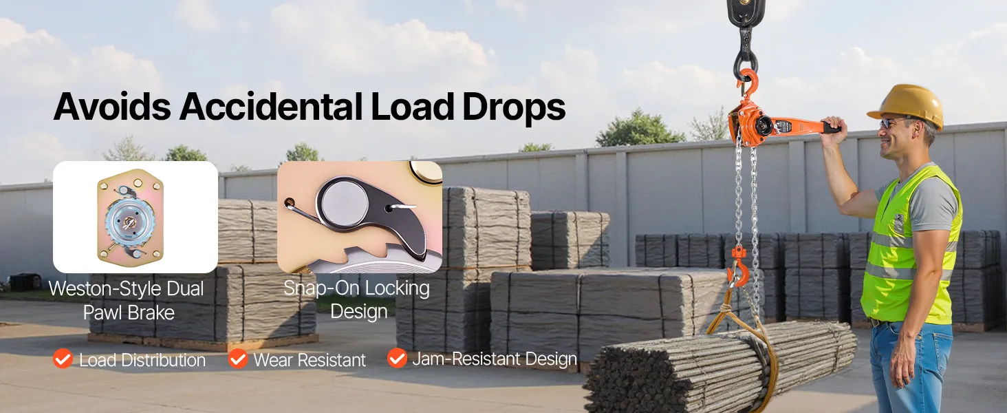 Tento ručný pákový kladkostroj s pozinkovanou reťazou G80 zvládne náročné úlohy, ako je premiestňovanie klád, strojov alebo oceľových nosníkov. Dvojitá západková brzda v štýle Weston a vedená drážka na reťaz zabezpečujú hladkú a bezpečnú prevádzku.