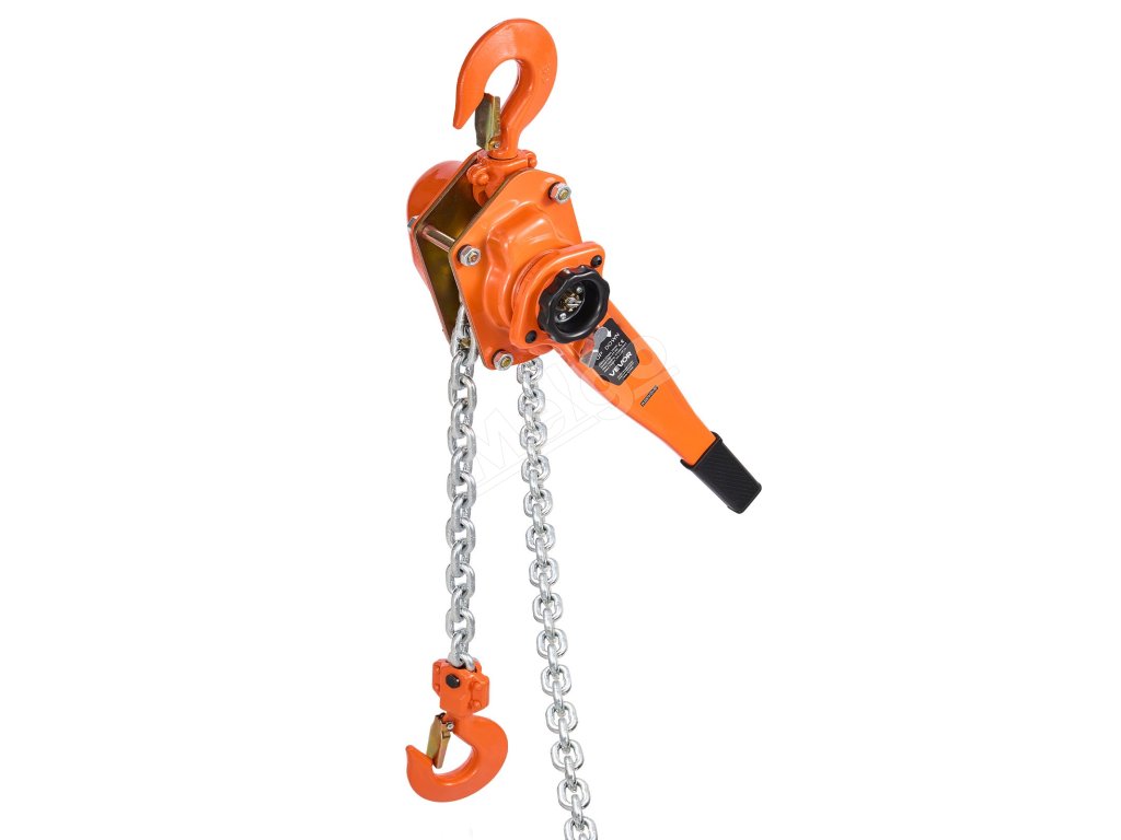 Pákový kladkostroj 3 t, zdvih 3 m, g80 reťaz, brzda, otočné háky 360°