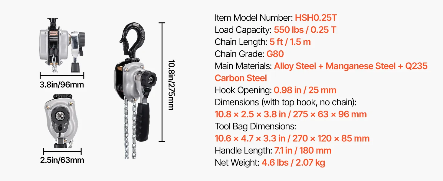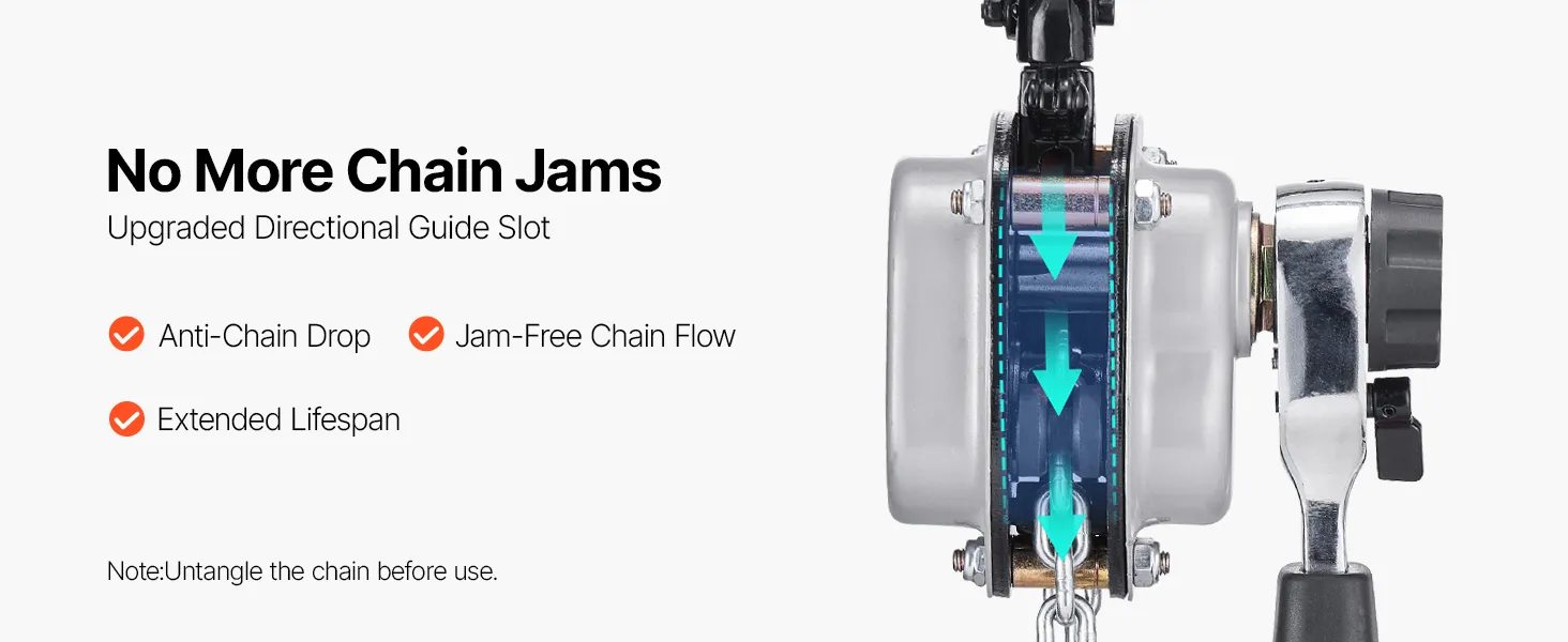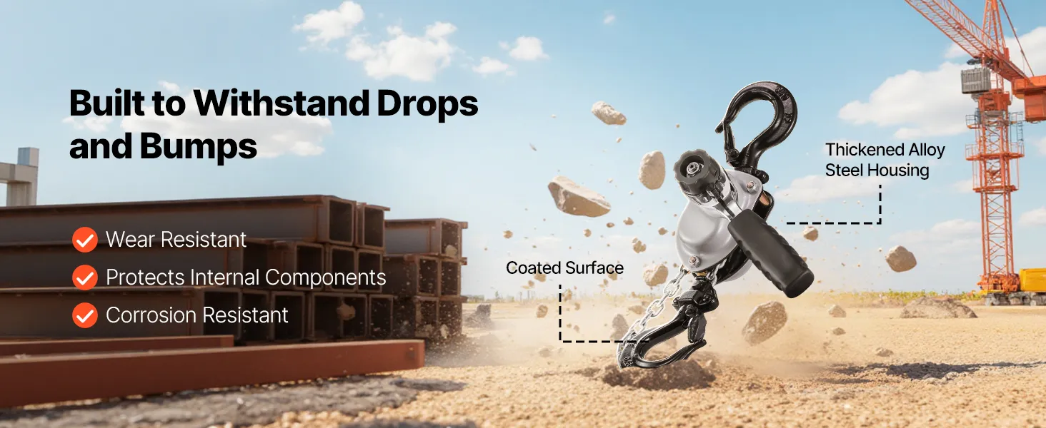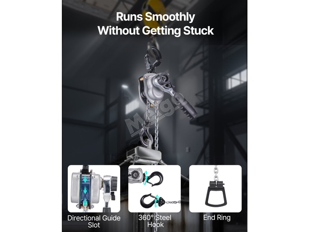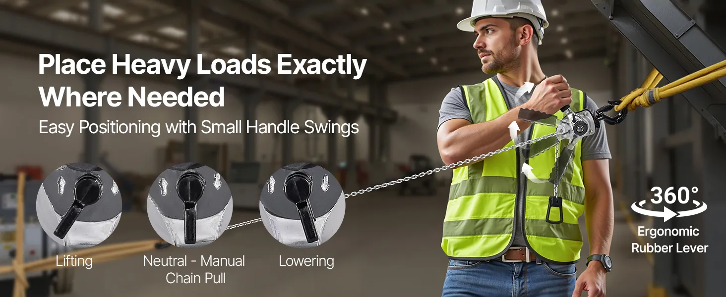 Tento ručný pákový kladkostroj s pozinkovanou reťazou G80 zvládne náročné úlohy, ako je premiestňovanie klád, strojov alebo oceľových nosníkov. Dvojitá západková brzda v štýle Weston a vedená drážka na reťaz zabezpečujú hladkú a bezpečnú prevádzku.
