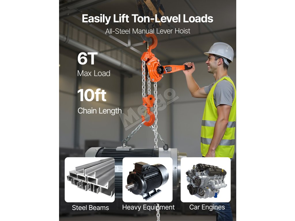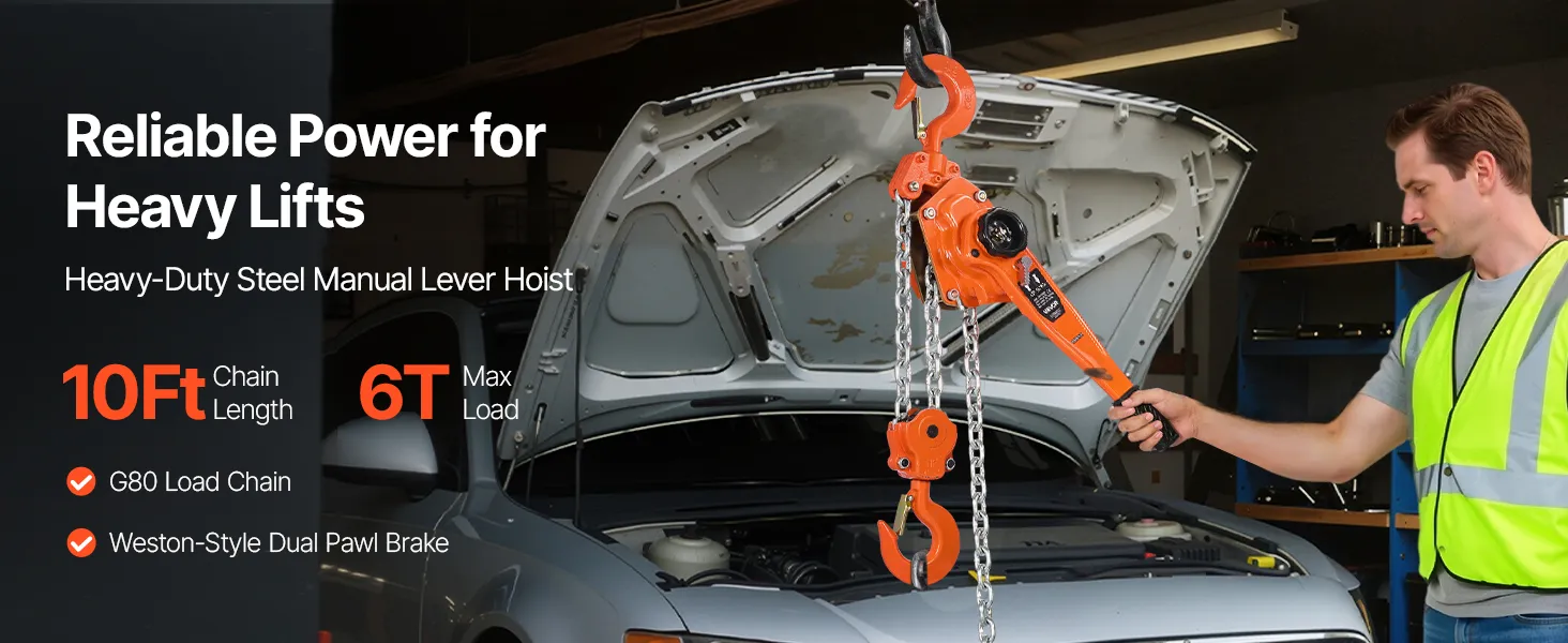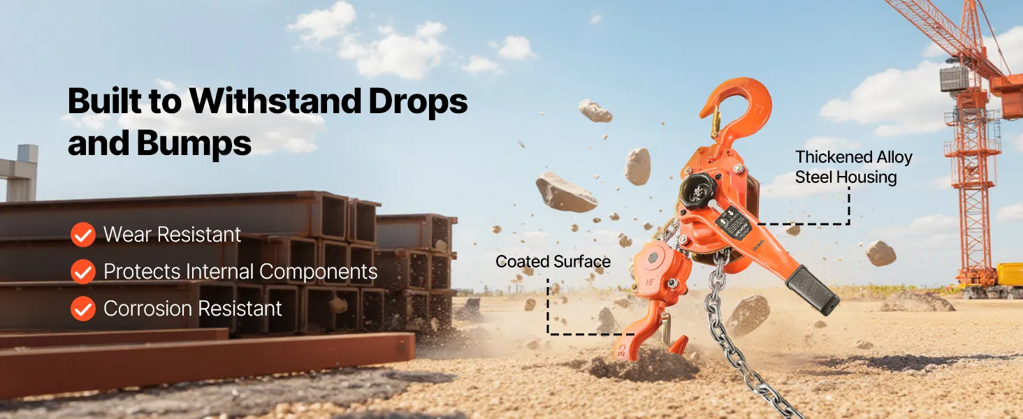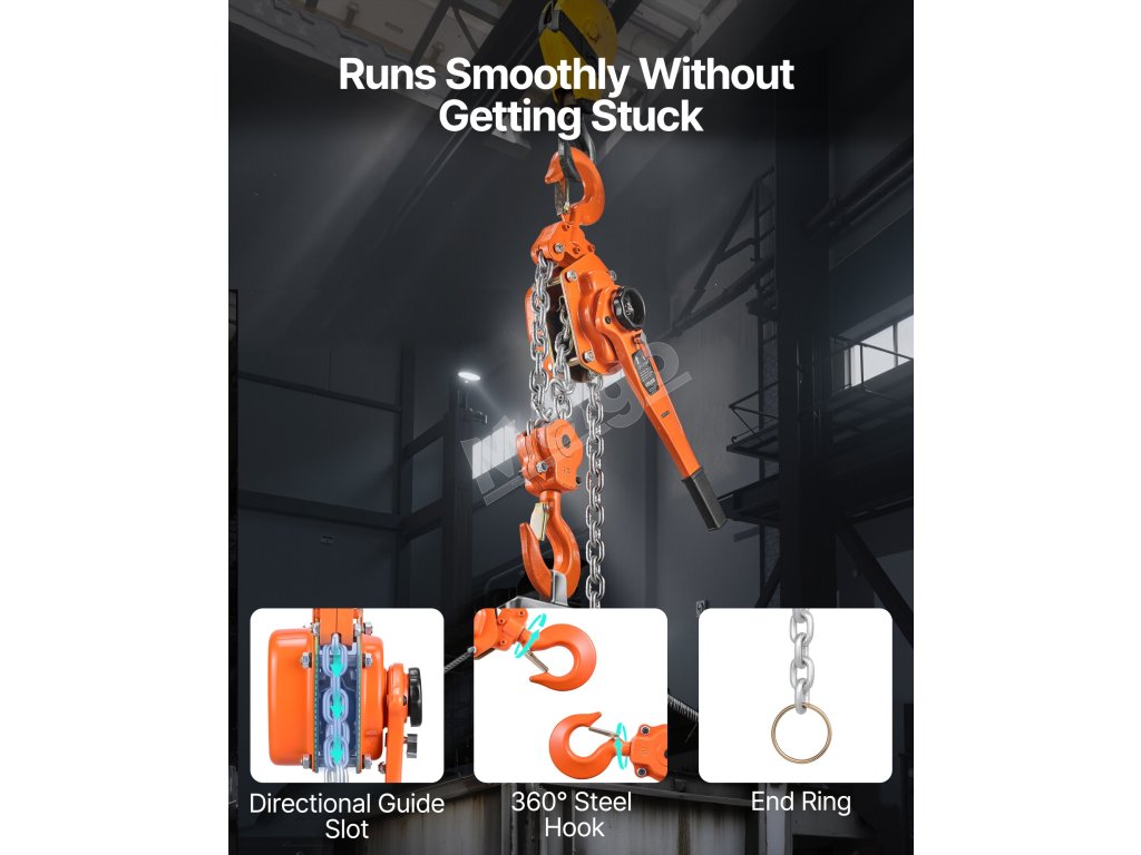 Tento ručný pákový kladkostroj s pozinkovanou reťazou G80 zvládne náročné úlohy, ako je premiestňovanie klád, strojov alebo oceľových nosníkov. Dvojitá západková brzda v štýle Weston a vedená drážka na reťaz zabezpečujú hladkú a bezpečnú prevádzku.