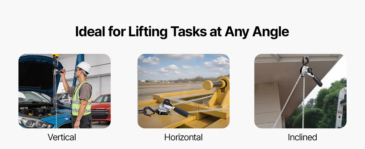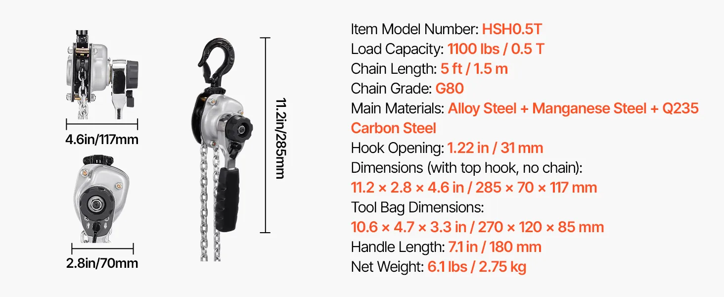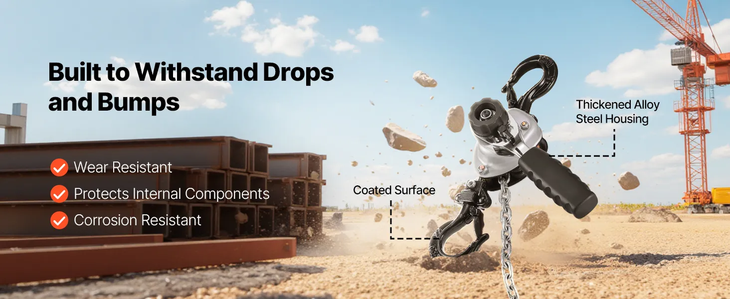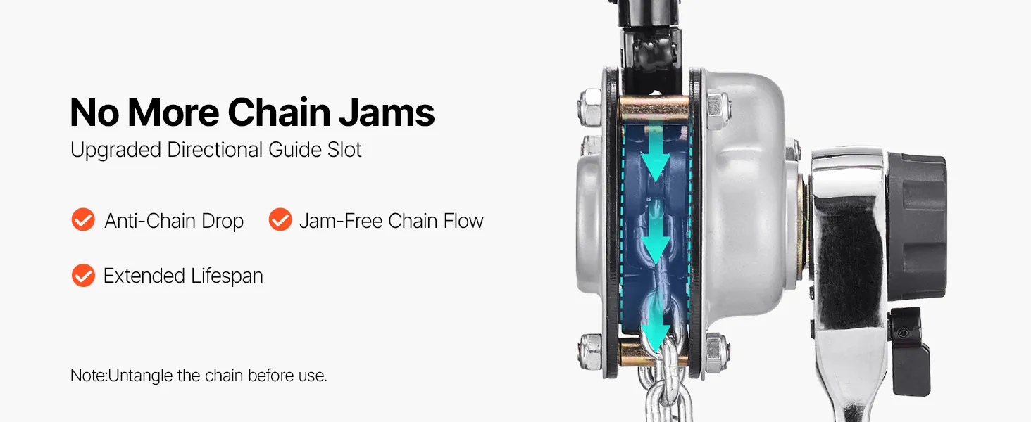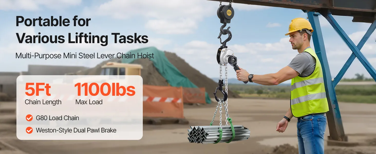 Tento ručný pákový kladkostroj s pozinkovanou reťazou G80 zvládne náročné úlohy, ako je premiestňovanie klád, strojov alebo oceľových nosníkov. Dvojitá západková brzda v štýle Weston a vedená drážka na reťaz zabezpečujú hladkú a bezpečnú prevádzku.