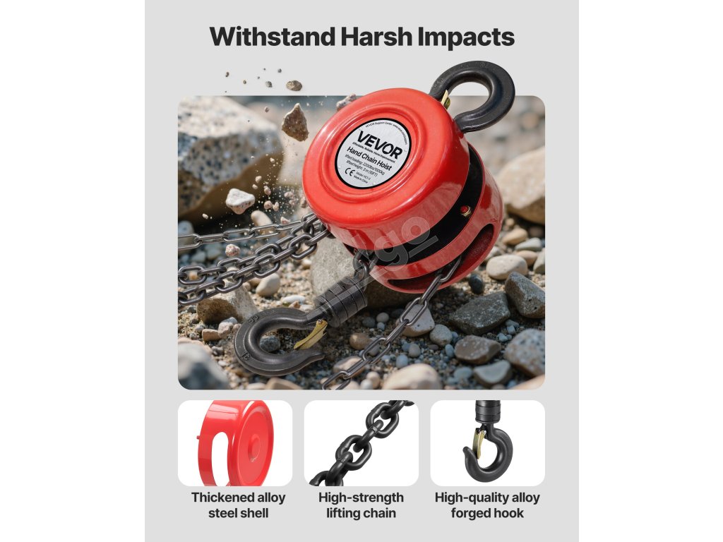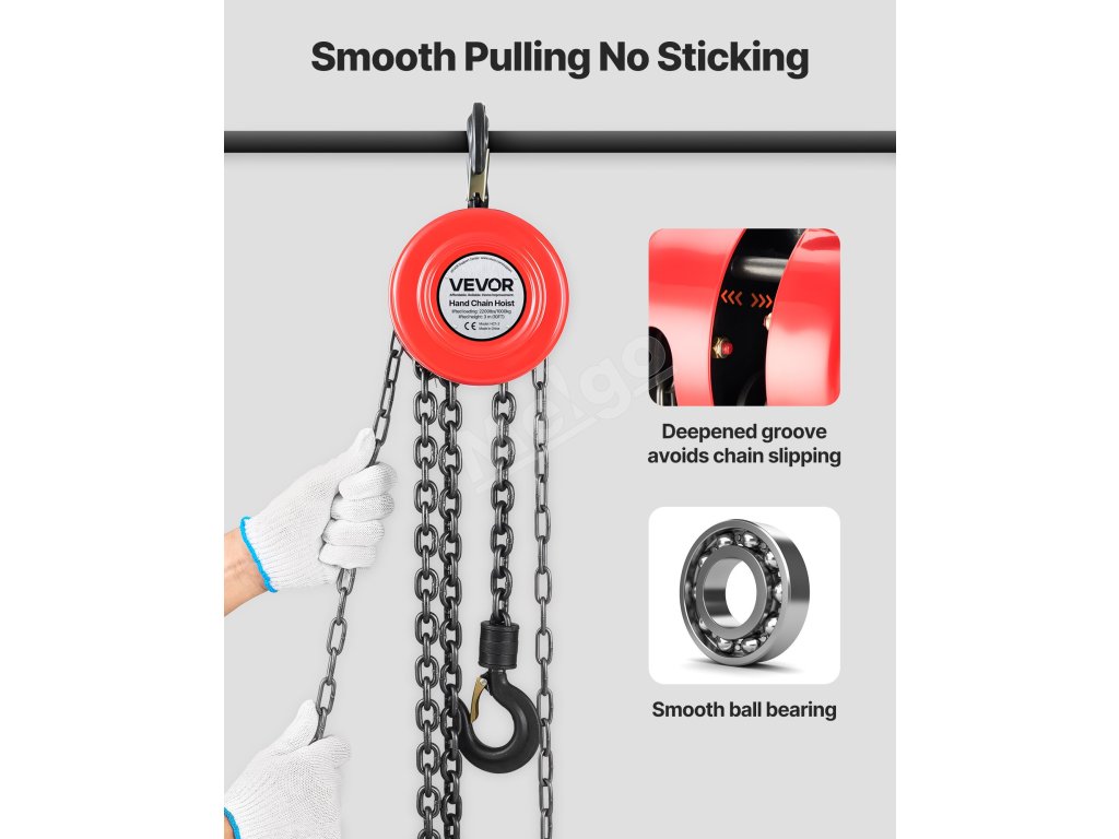 Zdvíhajte ťažké predmety s ľahkosťou! Náš ručný reťazový kladkostroj má nosnosť 2200 lbs (1T), čím vám ušetrí námahu a zároveň zakaždým zabezpečí hladkú a bezpečnú prevádzku.