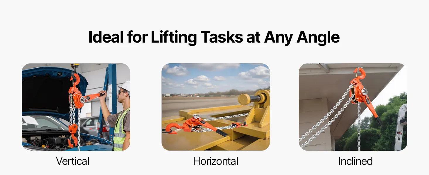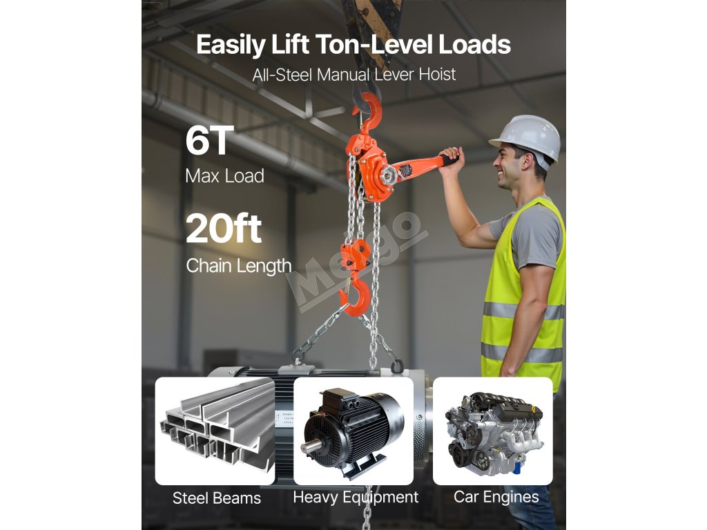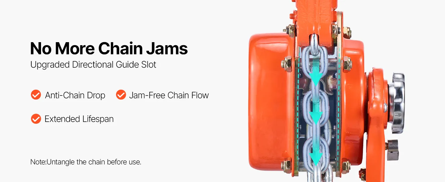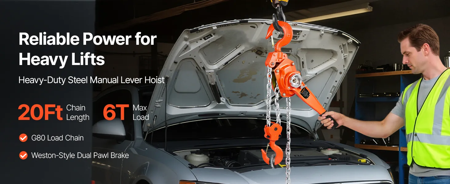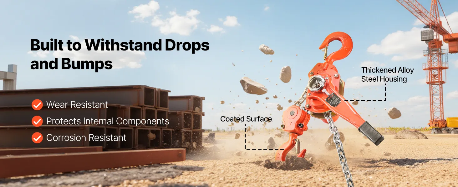 Tento ručný pákový kladkostroj s pozinkovanou reťazou G80 zvládne náročné úlohy, ako je premiestňovanie klád, strojov alebo oceľových nosníkov. Dvojitá západková brzda v štýle Weston a vedená drážka na reťaz zabezpečujú hladkú a bezpečnú prevádzku.