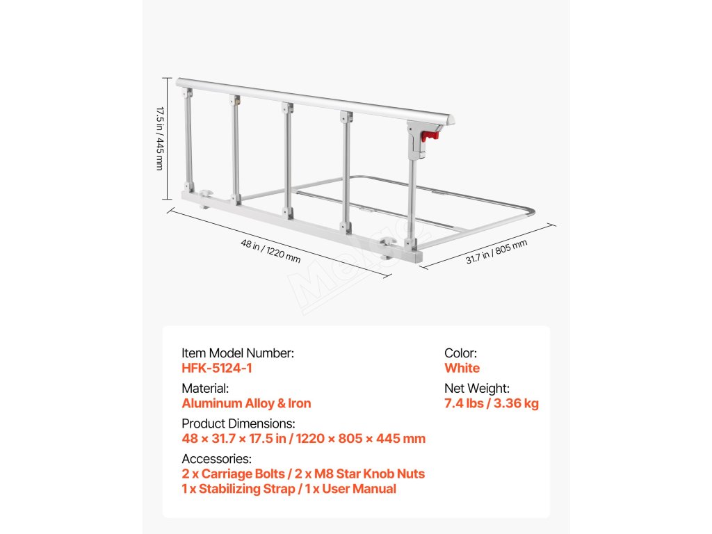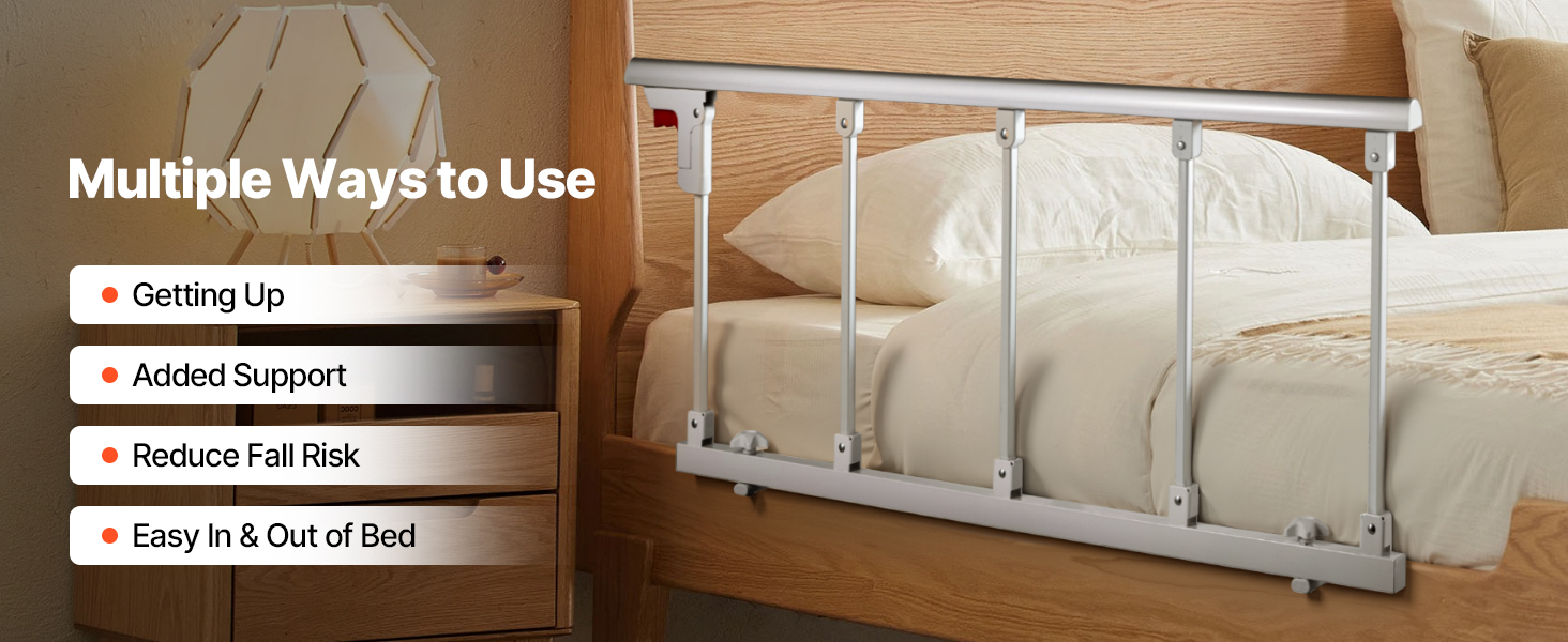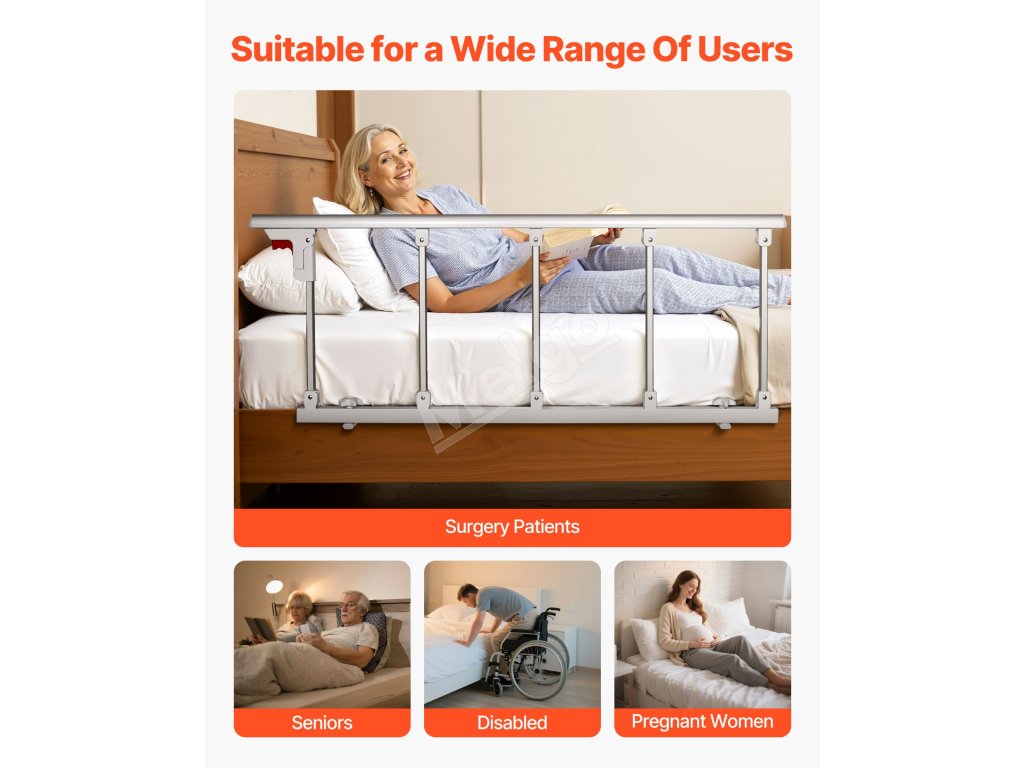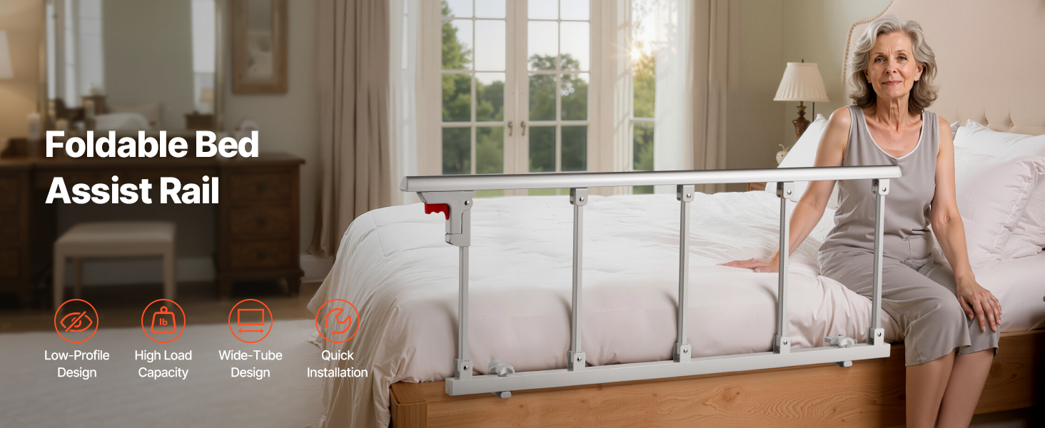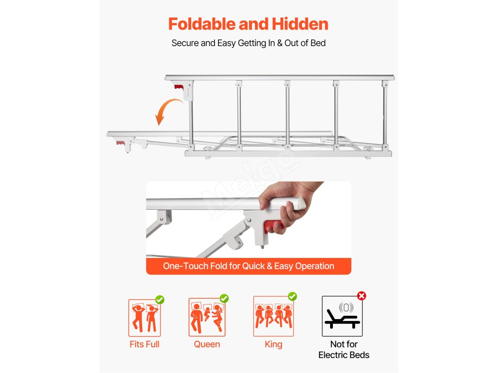Ľahko sa skladá a schováva za okrajom postele, čo uľahčuje vstávanie a uliehanie, optimalizuje priestor a minimalizuje riziko nárazov alebo zakopnutia, čím zabezpečuje bezpečnosť používateľov.
