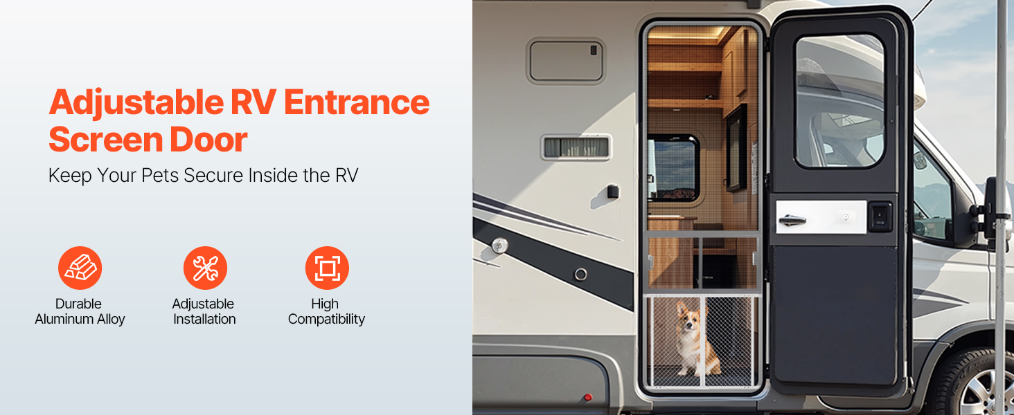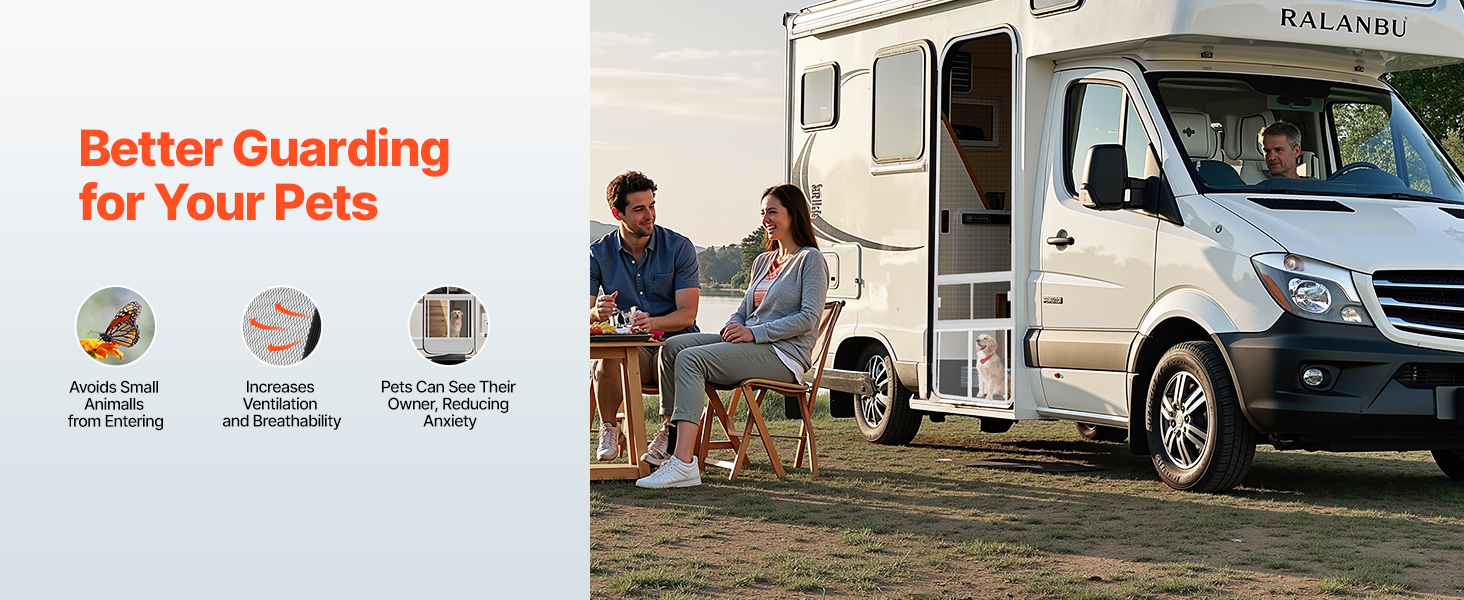 Tento chránič dverí obrazovky obytného vozidla, špeciálne navrhnutý pre majiteľov domácich zvierat, zaručuje, že vaši domáci miláčikovia zostanú bezpečne v obytnom vozidle a zároveň si budú môcť vychutnávať cirkuláciu čerstvého vzduchu, čím sa zabráni ich pobehovaniu počas cestovania v obytnom vozidle.