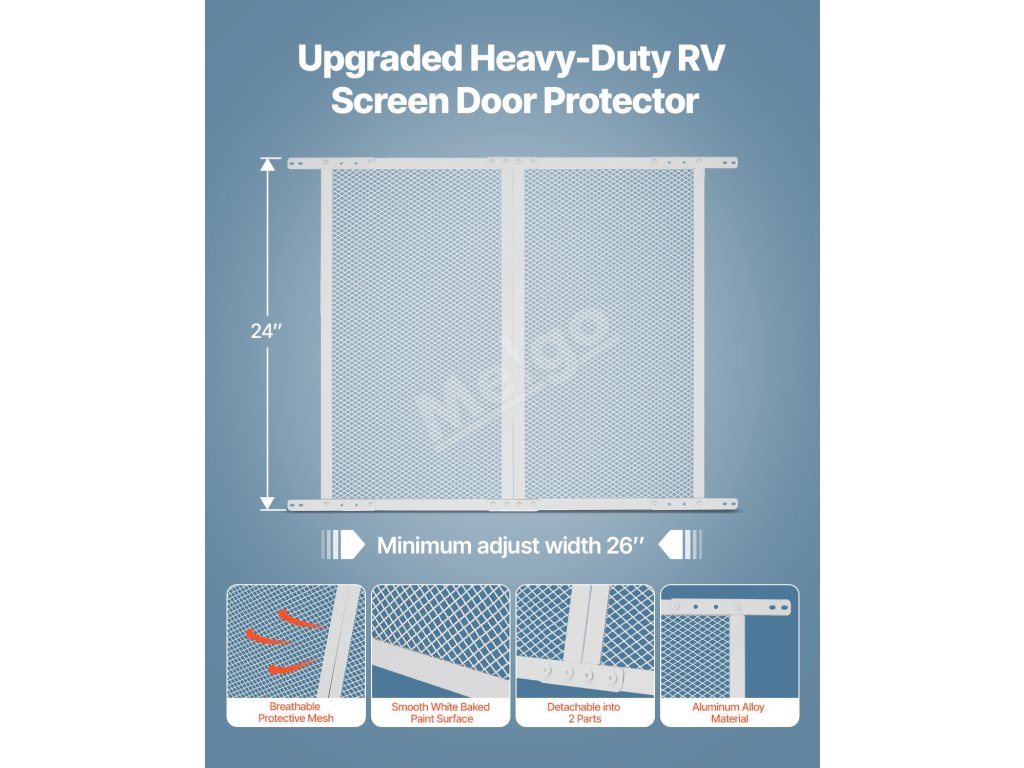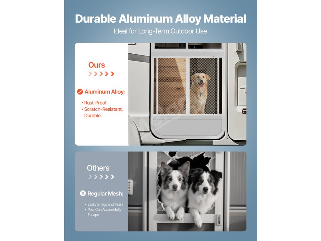 Tento chránič dverí obrazovky obytného vozidla, špeciálne navrhnutý pre majiteľov domácich zvierat, zaručuje, že vaši domáci miláčikovia zostanú bezpečne v obytnom vozidle a zároveň si budú môcť vychutnávať cirkuláciu čerstvého vzduchu, čím sa zabráni ich pobehovaniu počas cestovania v obytnom vozidle.