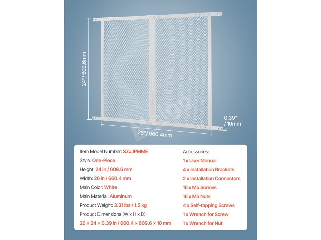 | Rozmery výrobku (š x v x h) | 26 x 24 x 0,39 palca / 660,4 x 609,6 x 10 mm |