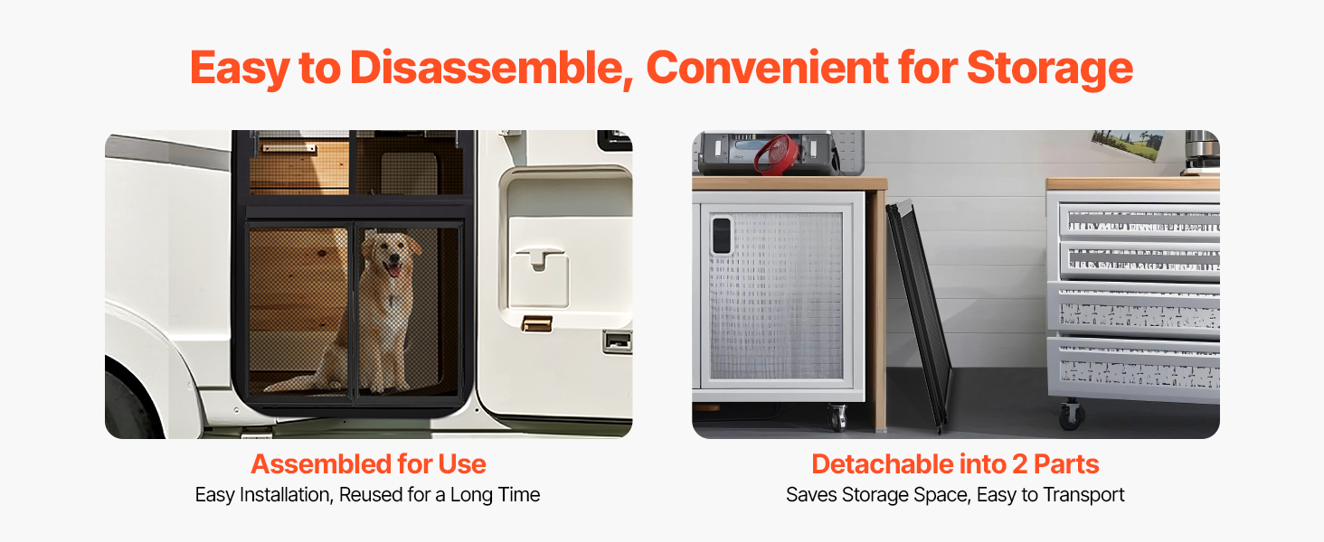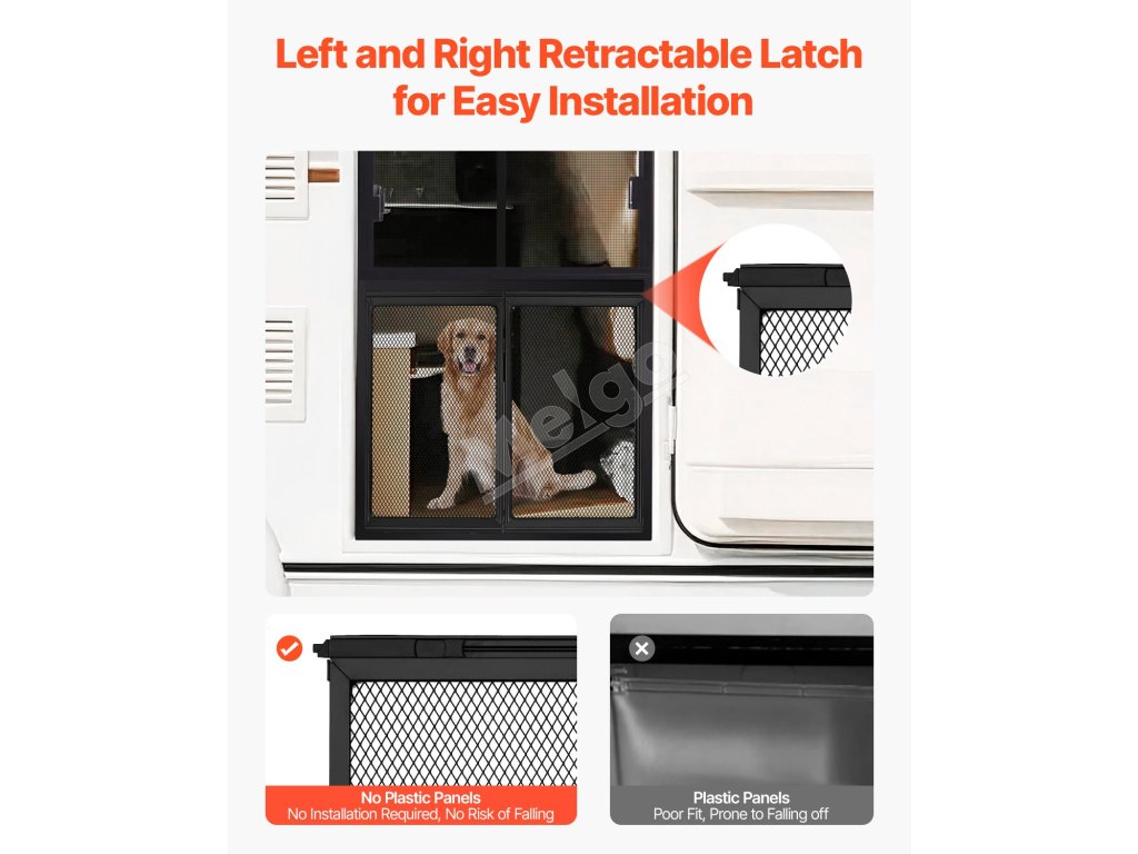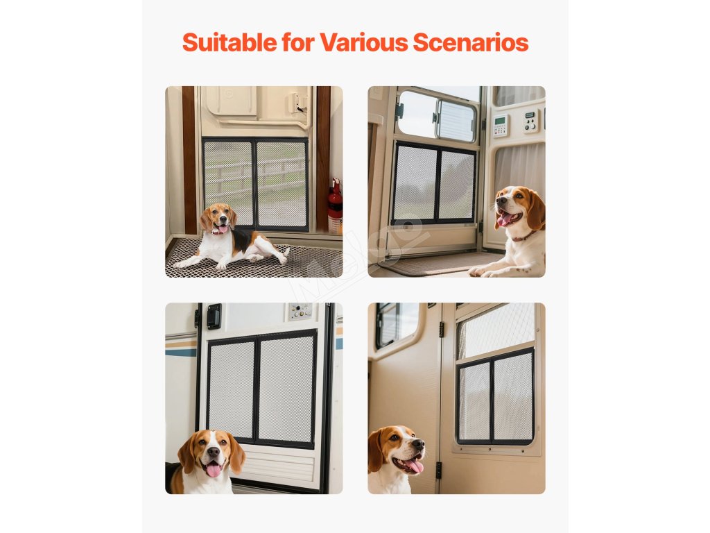 Tento chránič dverí obrazovky obytného vozidla, špeciálne navrhnutý pre majiteľov domácich zvierat, zaručuje, že vaši domáci miláčikovia zostanú bezpečne v obytnom vozidle a zároveň si budú môcť vychutnávať cirkuláciu čerstvého vzduchu, čím sa zabráni ich pobehovaniu počas cestovania v obytnom vozidle.