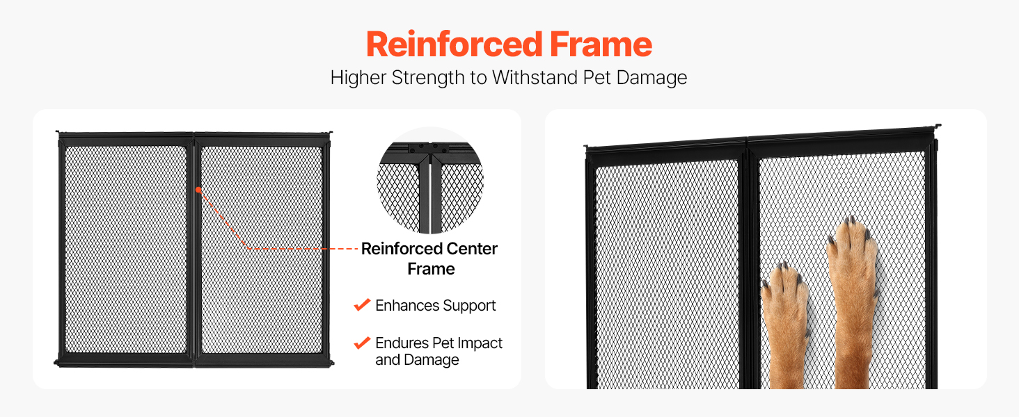 S týmto chráničom sieťových dverí si môžete užívať viaceré výhody: Účinne zabraňuje prístupu malých zvierat a poskytuje bezpečné prostredie pre vašich domácich miláčikov. Sieťový dizajn zlepšuje prúdenie vzduchu, čím udržiava čerstvý vzduch a zvyšuje pohodlie. Okrem toho môžu domáce zvieratá vidieť svojich majiteľov cez zástenu, čo znižuje úzkosť.