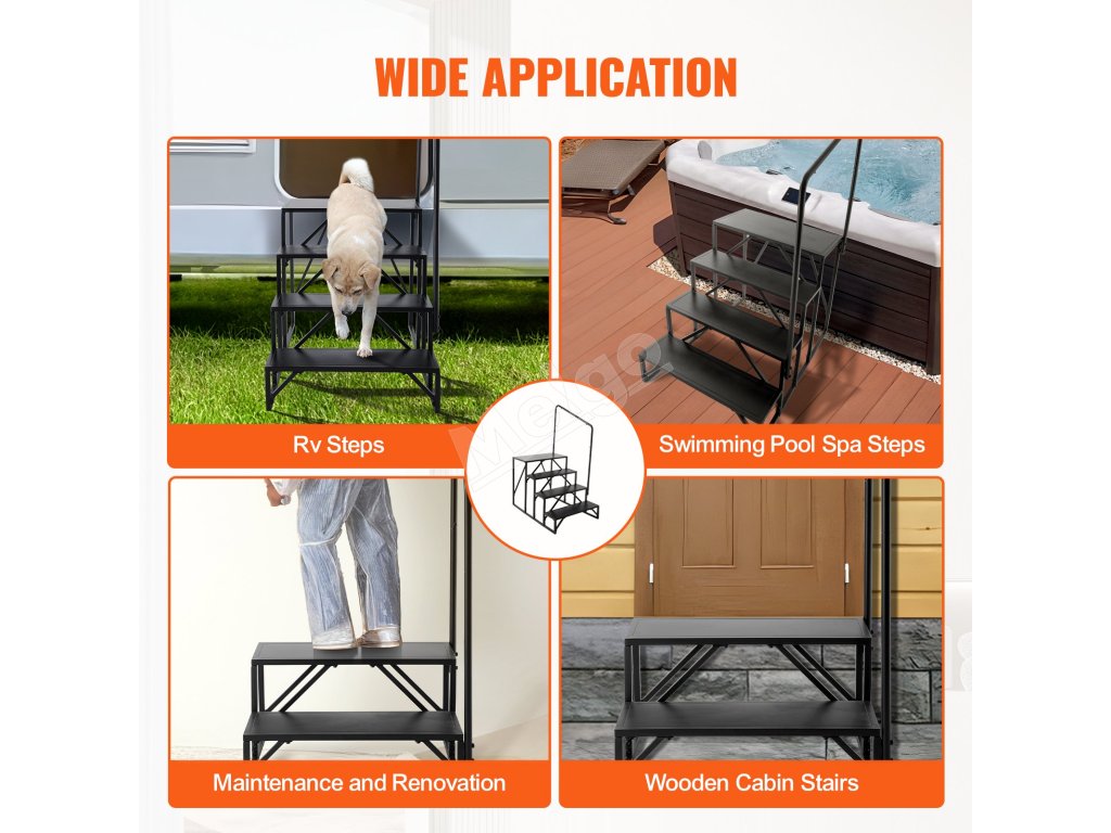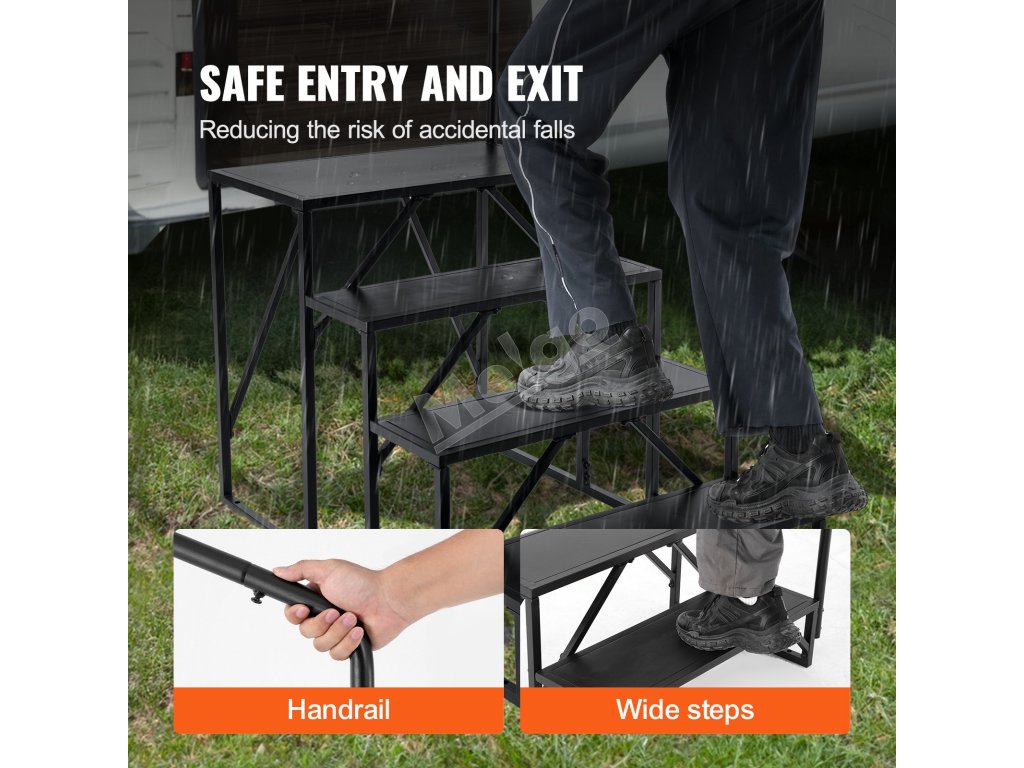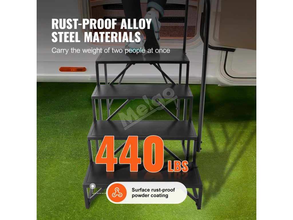 Ponúka stabilný a pevný schodík do obytného vozidla na jednoduchý prístup, ktorý unesie až 440 kg. Vyrobené z odolnej legovanej ocele, ktorá zabezpečuje minimálnu deformáciu a umožňuje prístup dvom osobám súčasne. Môžete ho použiť na rôzne účely vrátane vstupu a výstupu z RV, schodov do chaty alebo skladu a ďalších.