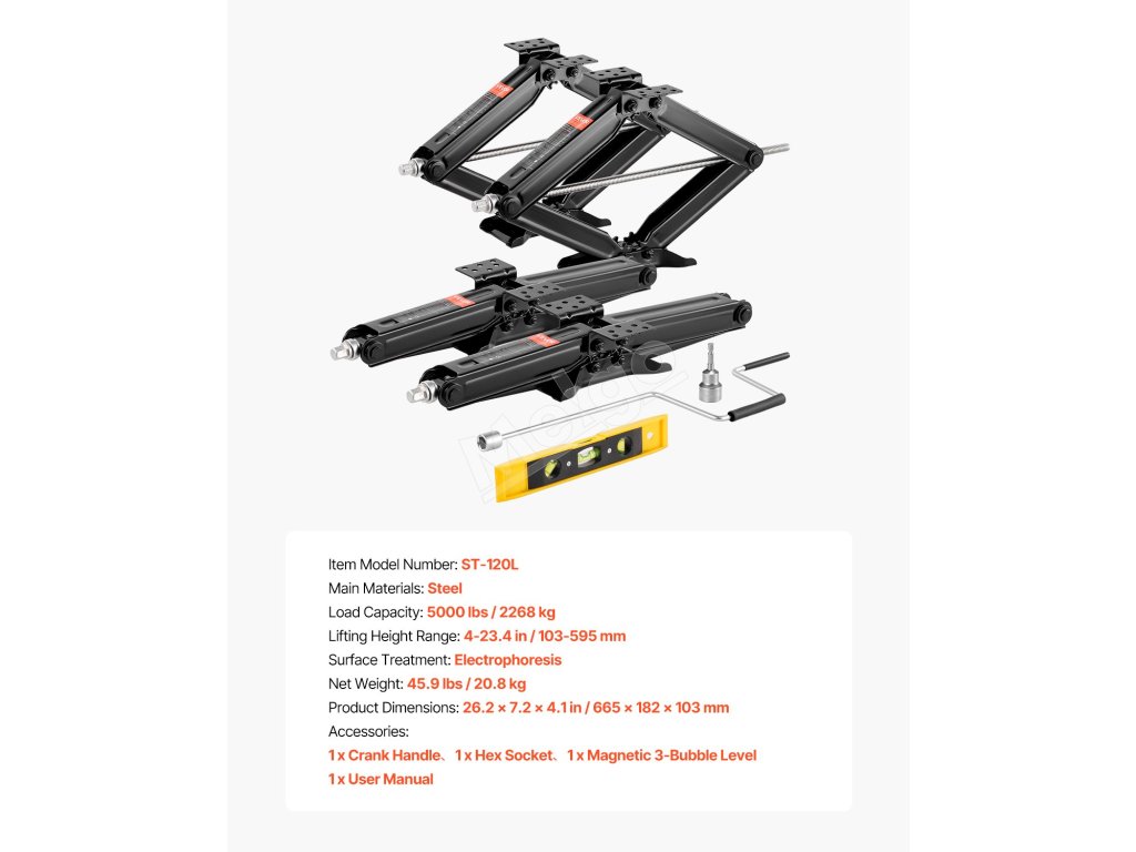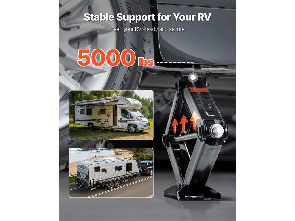 Tento nožnicový stabilizátor pre obytné automobily unesie 5000 libier a má rozsah zdvihu 4-23,4 palca na stabilné parkovanie. Je vyrobený z elektroforeticky upravenej ocele, poskytuje spoľahlivú oporu a ľahko sa ovláda samostatne pomocou predĺženej ručnej kľuky a magnetickej vodováhy.