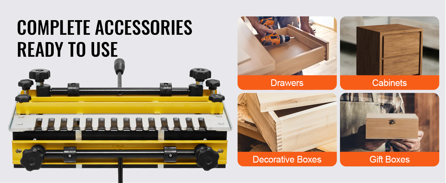 Šablóna na výrobu čapových spojov sa dodáva so všetkým potrebným príslušenstvom na okamžité použitie a je určená ako pre profesionálnych stolárov, tak aj pre nadšencov domáceho majstrovania. Táto frézovacia šablóna na čapové spoje je ideálna na výrobu zásuviek, skríň, dekoratívnych škatúľ, darčekových škatúľ a ďalších výrobkov a je neoceniteľným doplnkom každej dielne.