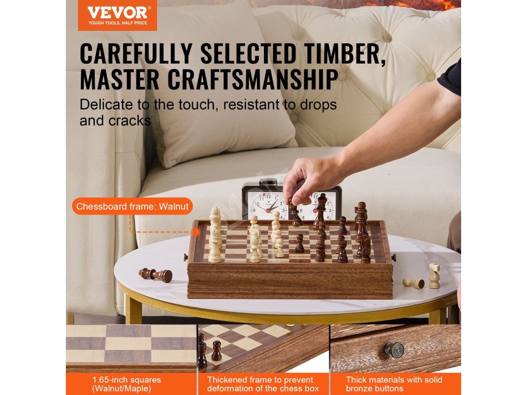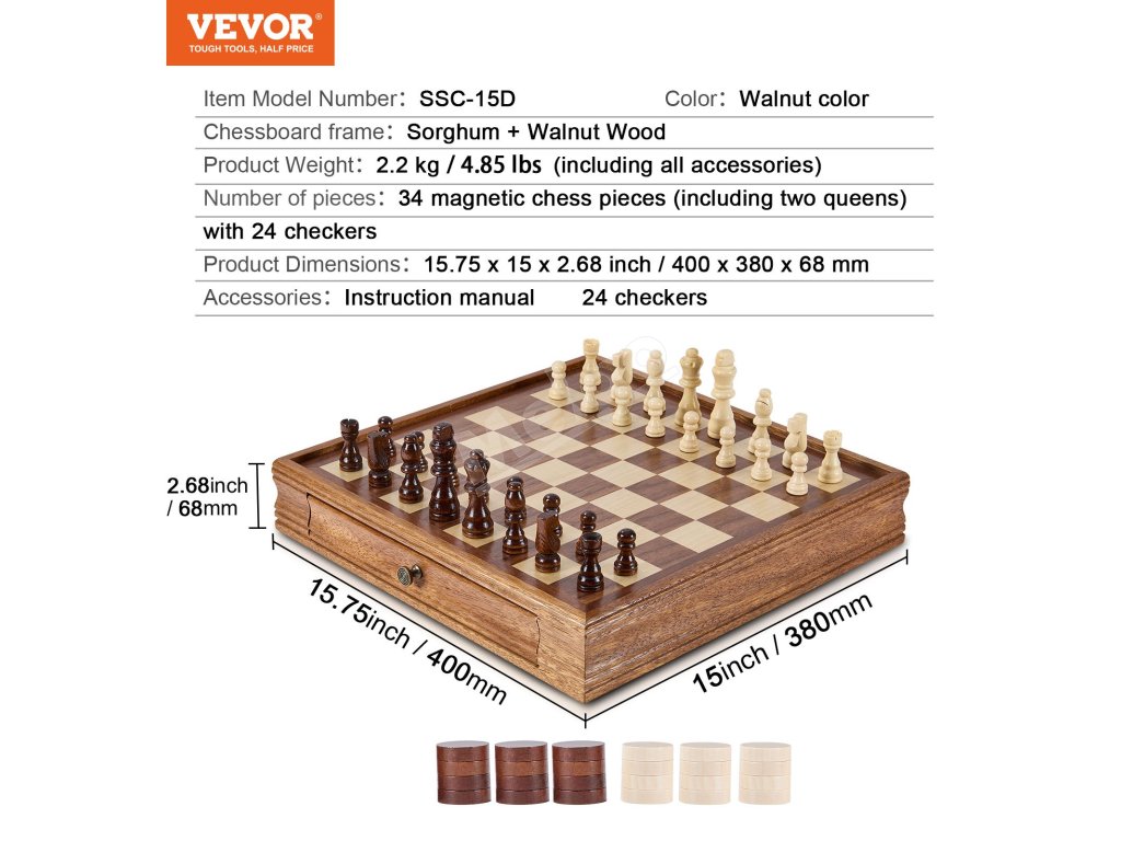 Táto drevená súprava šachu a dámy 2 v 1 ponúka skvelý pomer ceny a kvality. Či už ste šachový nadšenec, chcete si spríjemniť voľný čas, chcete obdarovať priateľov a rodinu, alebo sa snažíte predviesť svoje schopnosti, táto šachová súprava je ideálnym spoločníkom a skvelou voľbou.