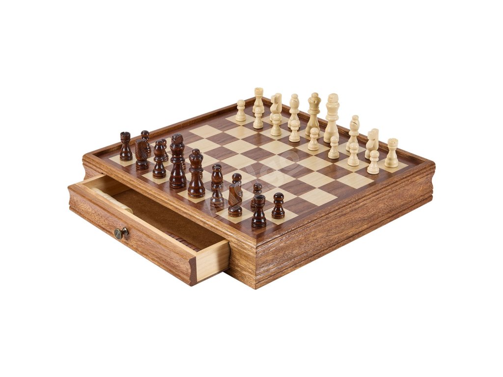 Drevená šachová súprava 15 inch 2v1 so zásuvkou, vážené figúry