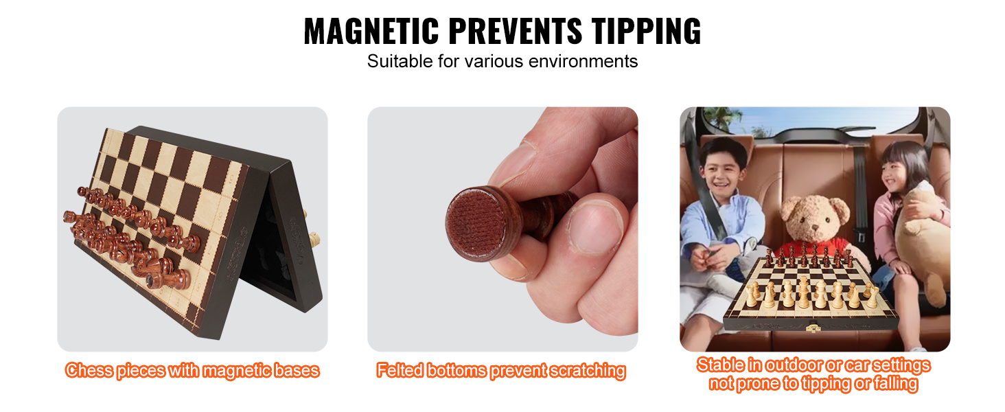 Magnetická konštrukcia bezpečne drží šachové figúrky, čím eliminuje nestabilitu a umožňuje vám sústrediť sa na ďalší strategický ťah.