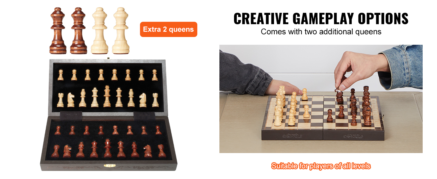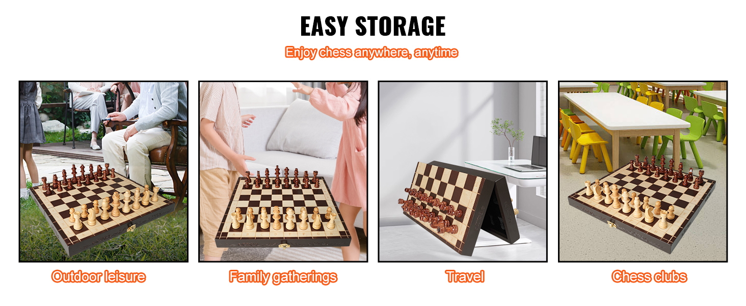 Dômyselne navrhnutý vložený úložný box umožňuje pohodlné uloženie a ochranu šachových figúrok. Ľahko sa prenáša a je pripravená priniesť zábavu kedykoľvek a kdekoľvek.