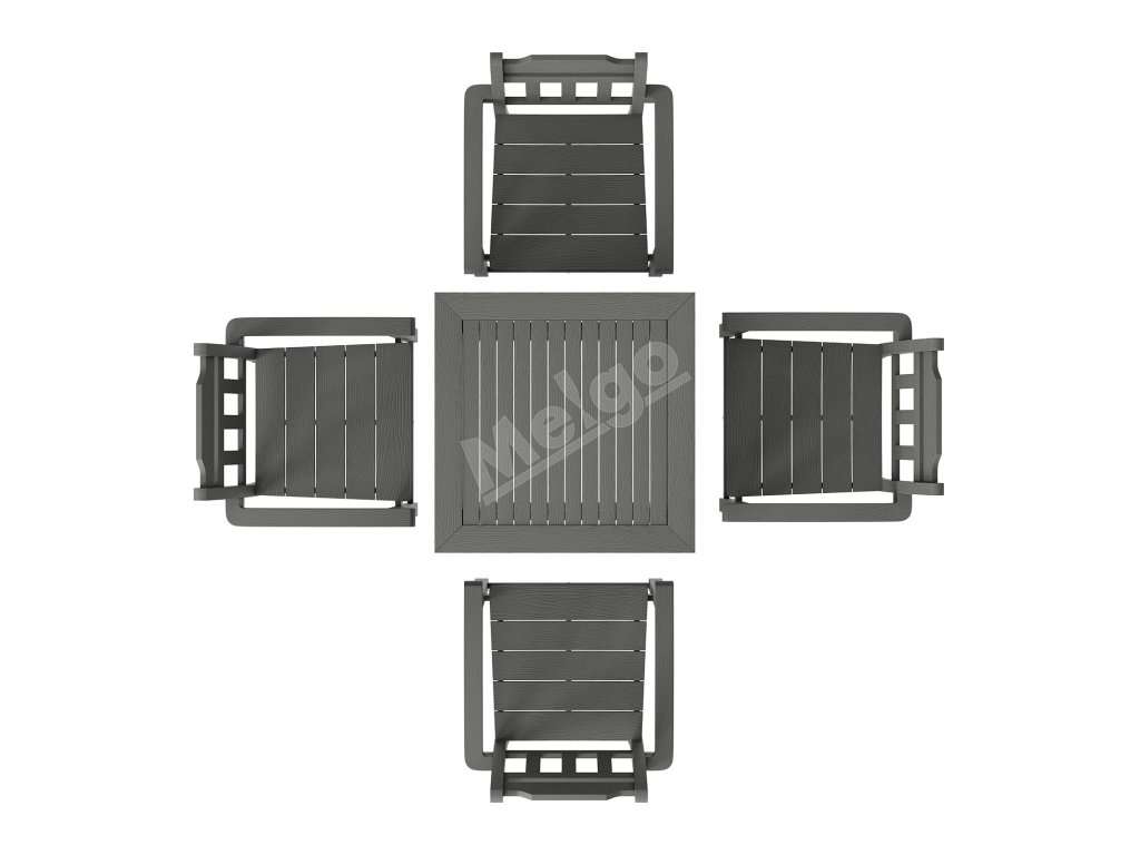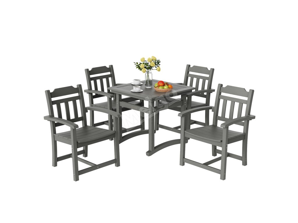 5-dielny záhradný jedálenský set so štvorcovým stolom hips, svetlosivý
