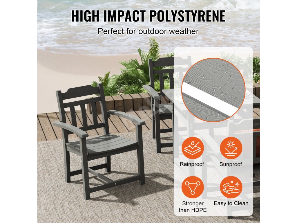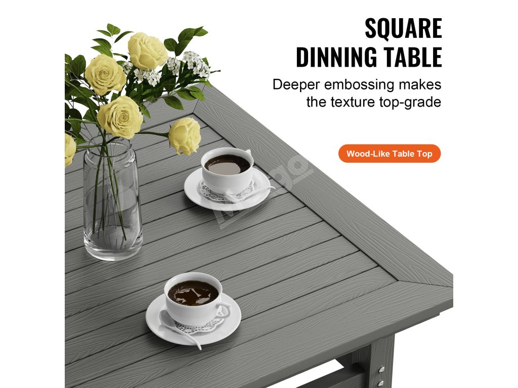 Stôl je vybavený hlbším reliéfom, ktorý zvýrazňuje textúru a dodáva mu prvotriedny vzhľad. Doska stola pripomínajúca drevo dodá vášmu vonkajšiemu jedálenskému priestoru nádych elegancie.