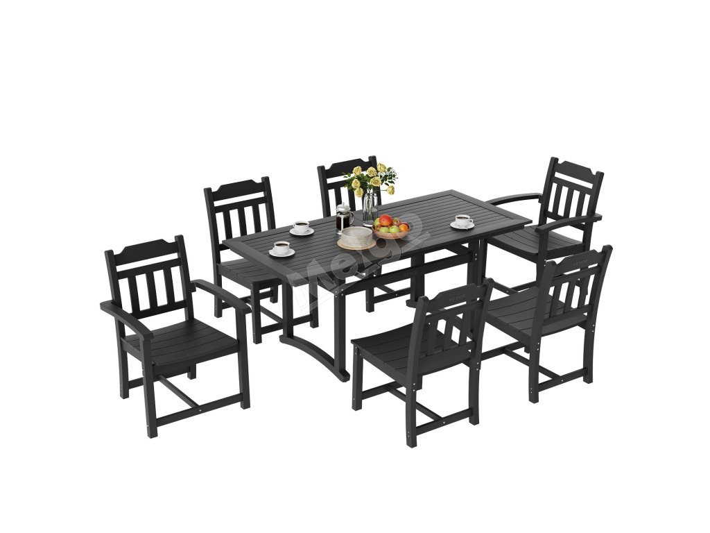 Záhradný jedálenský set 7-dielny, obdĺžnikový stôl a stoličky, čierny