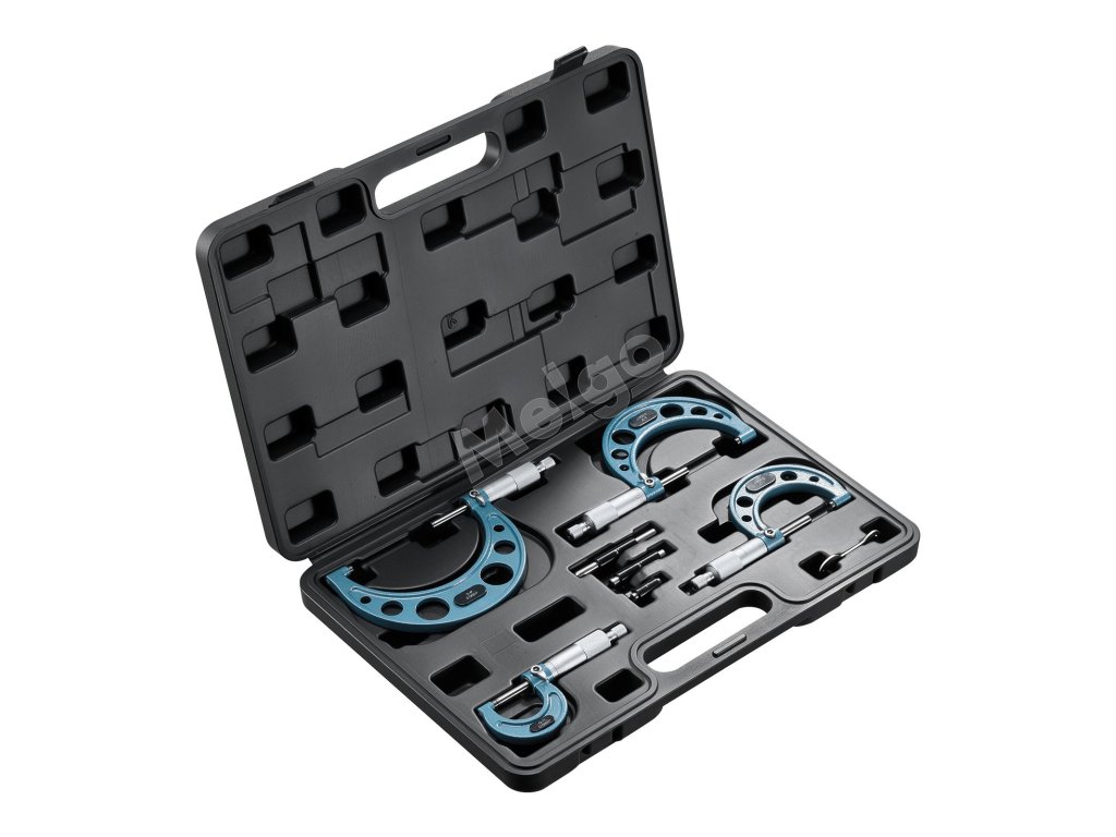 Táto sada mikrometrov je vyrobená z kovu a má modrú povrchovú úpravu, ktorá zlepšuje vzhľad a viditeľnosť v pracovnom priestore, pomáha rýchlo identifikovať nástroj, zvyšuje efektivitu a predlžuje jeho životnosť.