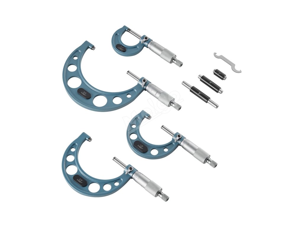 Sada 4 vonkajších mikrometrov 0–1/1–2/2–3/3–4 in na kov s púzdrom