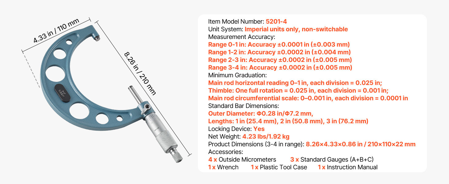 | Rozsah 3-4 in | Presnosť ±0,0002 palca |